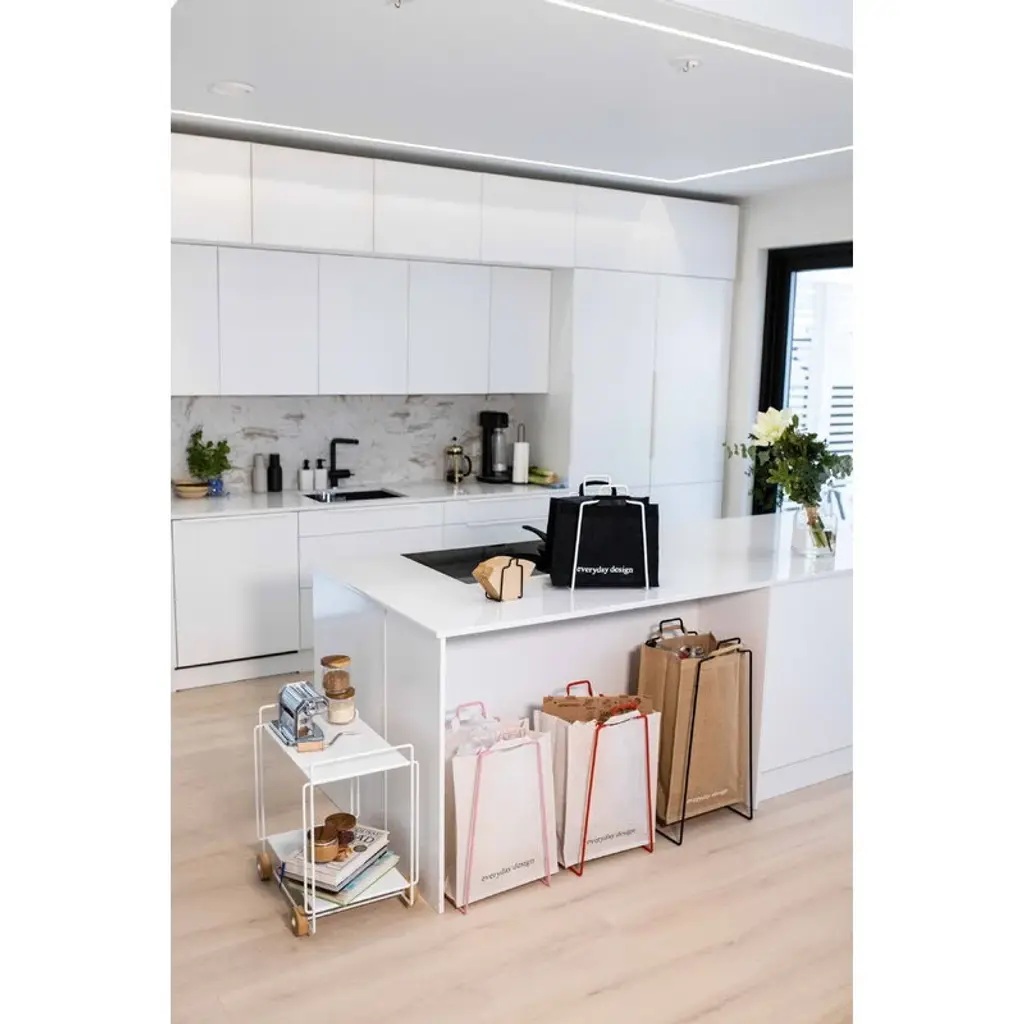 Everyday Design's Lahti holder is both an esthetic and practical solution for sorting, recycling, storing and keeping things tidy, especially in smaller homes and rooms. The paper bag holder features a simple metal frame, suitable for any space and interiors. The holder is named after a Finnish city, Lahti, which is best known for its rich sporting tradition, especially in winter sports like skiing and ski jumping.