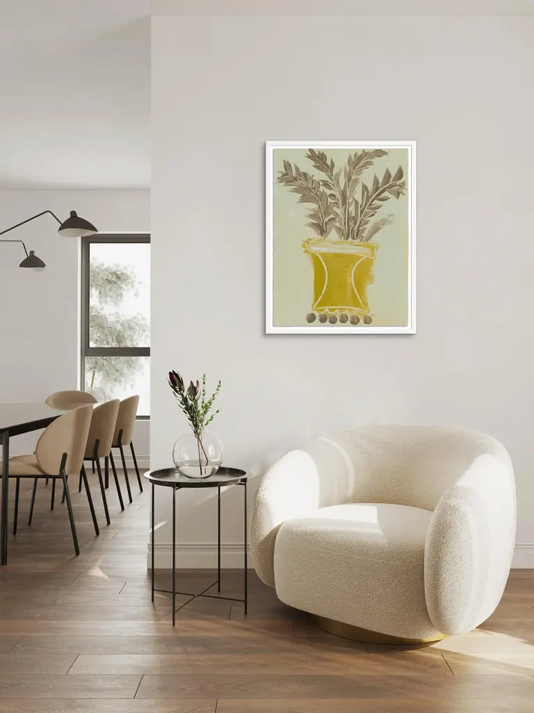 DESCRIPTION: Laie Botanical Vase Study I by Haley Mathewes in White Frame, Small Art Print SPECIFICATIONS: Type: Giclée Art Print on Matte Paper. Overall Size (in): 19x24. Image Size (in): 17x22. Orientation: Vertical. Flush/Float/Matted: Float. Frame Color: White. Hanging Hardware: Picture Perfect. FRAMING: Each art work arrives framed and ready to hang. We use handmade frames with a plexiglass glazing front, because it offers less glare than standard glass. At this time, we only offer framed prints. ARTIST BIO: Haley Mathewes is a talented artist based in Charleston, South Carolina, renowned for her evocative portrayals of the female form. With a rich background in costume design and a career in fashion retail, Haley's artistic vision is deeply influenced by her experience in these fields. Her work is distinguished by an expressive style and a masterful use of layered media, including charcoal, chalk, acrylic, watercolor, and gouache. This unique blend of techniques allows her to create dynamic and textured compositions that capture the essence of her subjects.