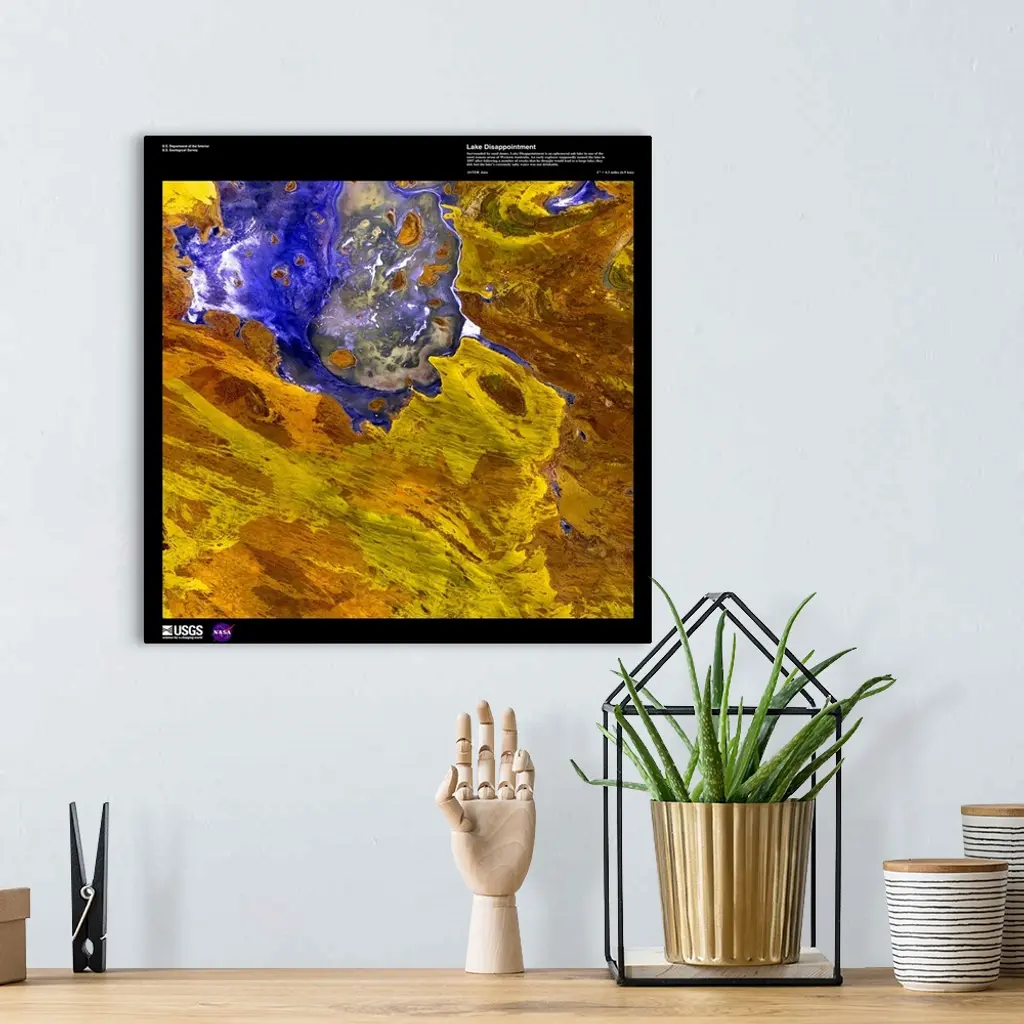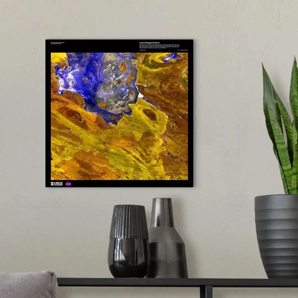 Surrounded by sand dunes, Lake Disappointment is an ephemeral salt lake in one of the most remote areas of Western Australia. An early explorer supposedly named the lake in 1897 after following a number of creeks that he thought would lead to a large lake; they did, but the lake's extremely salty water was not drinkable. December 31, 2000.