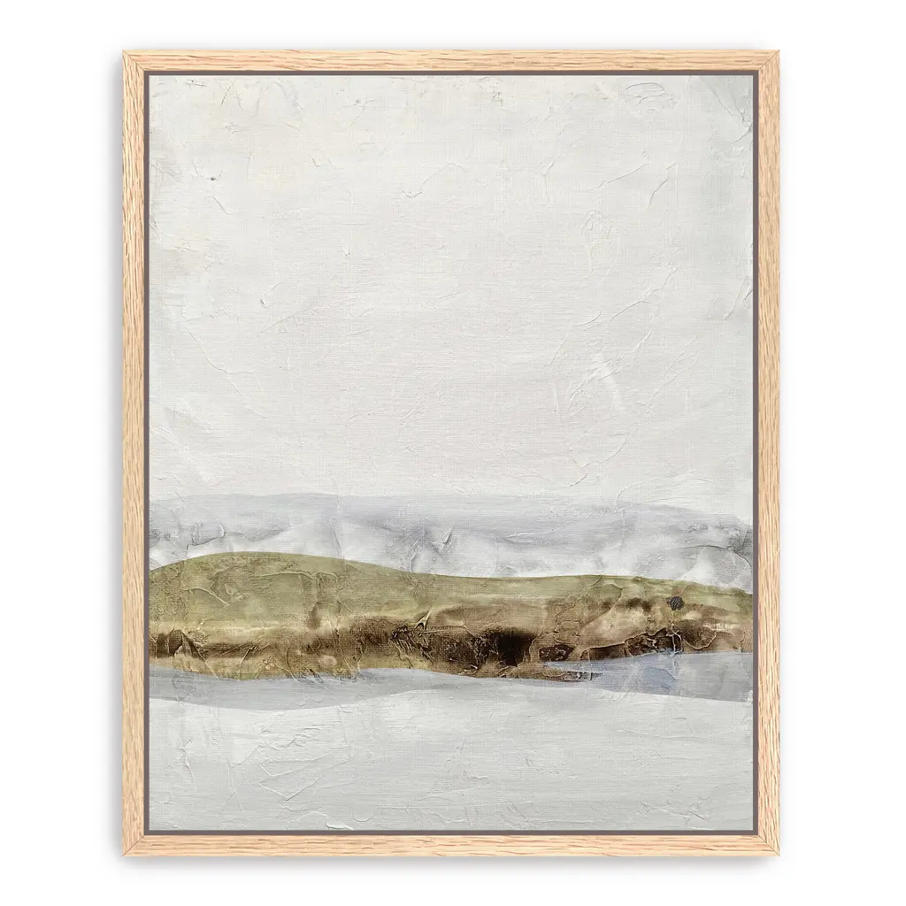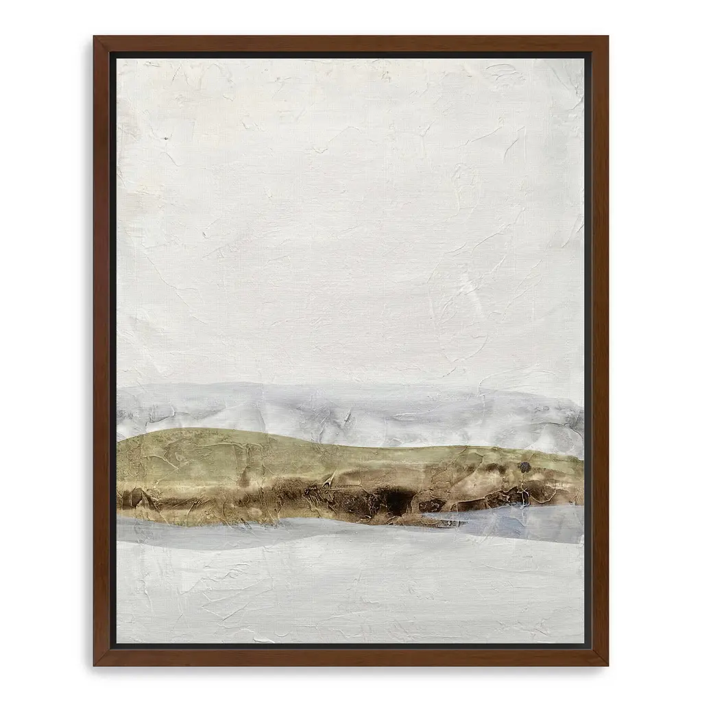Add a touch of elegance to your home with the "Lake Morning" canvas art print by Haley Knighten. This piece features soothing neutral earthy tones that blend harmoniously, creating a serene and sophisticated atmosphere. Its abstract landscape design enhances both contemporary and classic interiors alike. Available in black frame, dark walnut frame, oak frame, or as a wrapped canvas. Our Gallery Wrap Canvas Prints are proudly assembled with high quality materials in California, USA. Each piece is printed on a thick, archival grade canvas using Giclee technology. It is then hand-stretched by our experienced artisans over solid wood bars, which will not warp over time. The final product is a piece personally crafted for you to confidently display on your wall. Care and Assembly: Ensure that the location of your piece has little to no exposure to heat, sunlight, and moisture. Wipe clean, only if needed. Each piece includes a sawtooth hanger to hang on your wall vertically.