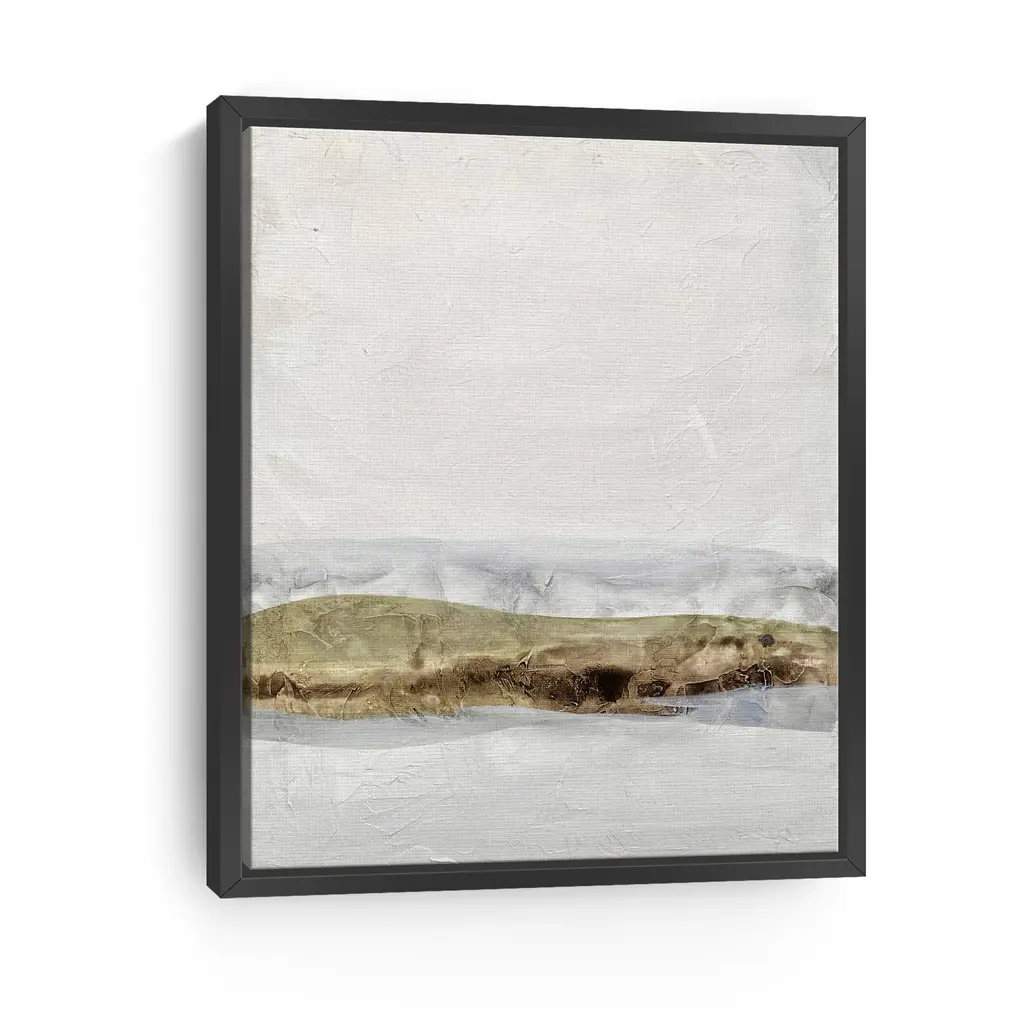 Add a touch of elegance to your home with the "Lake Morning" canvas art print by Haley Knighten. This piece features soothing neutral earthy tones that blend harmoniously, creating a serene and sophisticated atmosphere. Its abstract landscape design enhances both contemporary and classic interiors alike. Available in black frame, dark walnut frame, oak frame, or as a wrapped canvas. Our Gallery Wrap Canvas Prints are proudly assembled with high quality materials in California, USA. Each piece is printed on a thick, archival grade canvas using Giclee technology. It is then hand-stretched by our experienced artisans over solid wood bars, which will not warp over time. The final product is a piece personally crafted for you to confidently display on your wall. Care and Assembly: Ensure that the location of your piece has little to no exposure to heat, sunlight, and moisture. Wipe clean, only if needed. Each piece includes a sawtooth hanger to hang on your wall vertically.