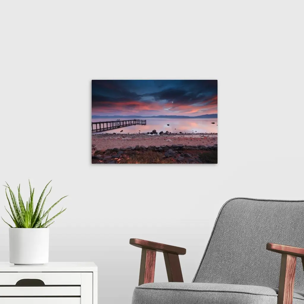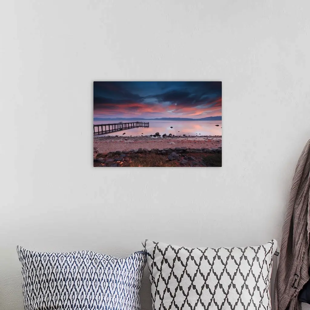 Fiery sunset clouds over Lake Tahoe at Sugar Pine Point State Park, California.