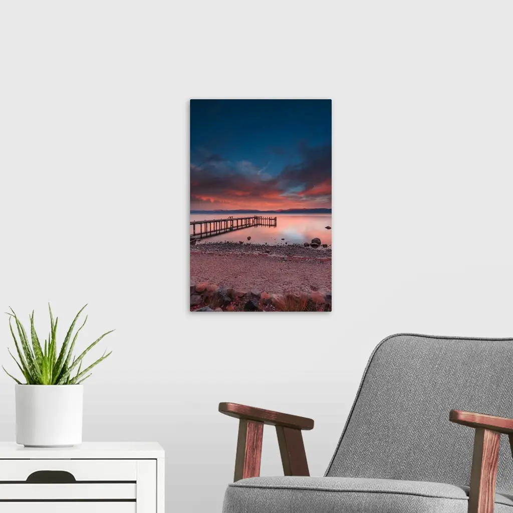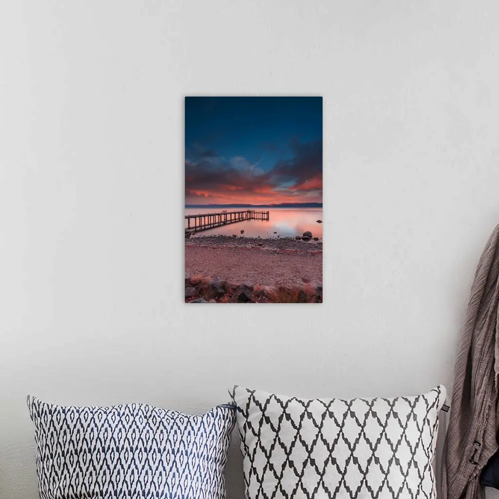 Fiery sunset clouds over Lake Tahoe at Sugar Pine Point State Park, California.