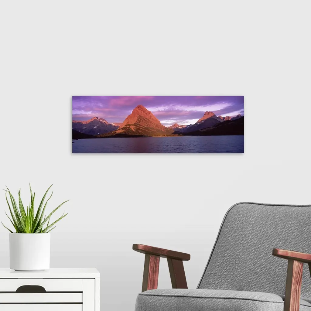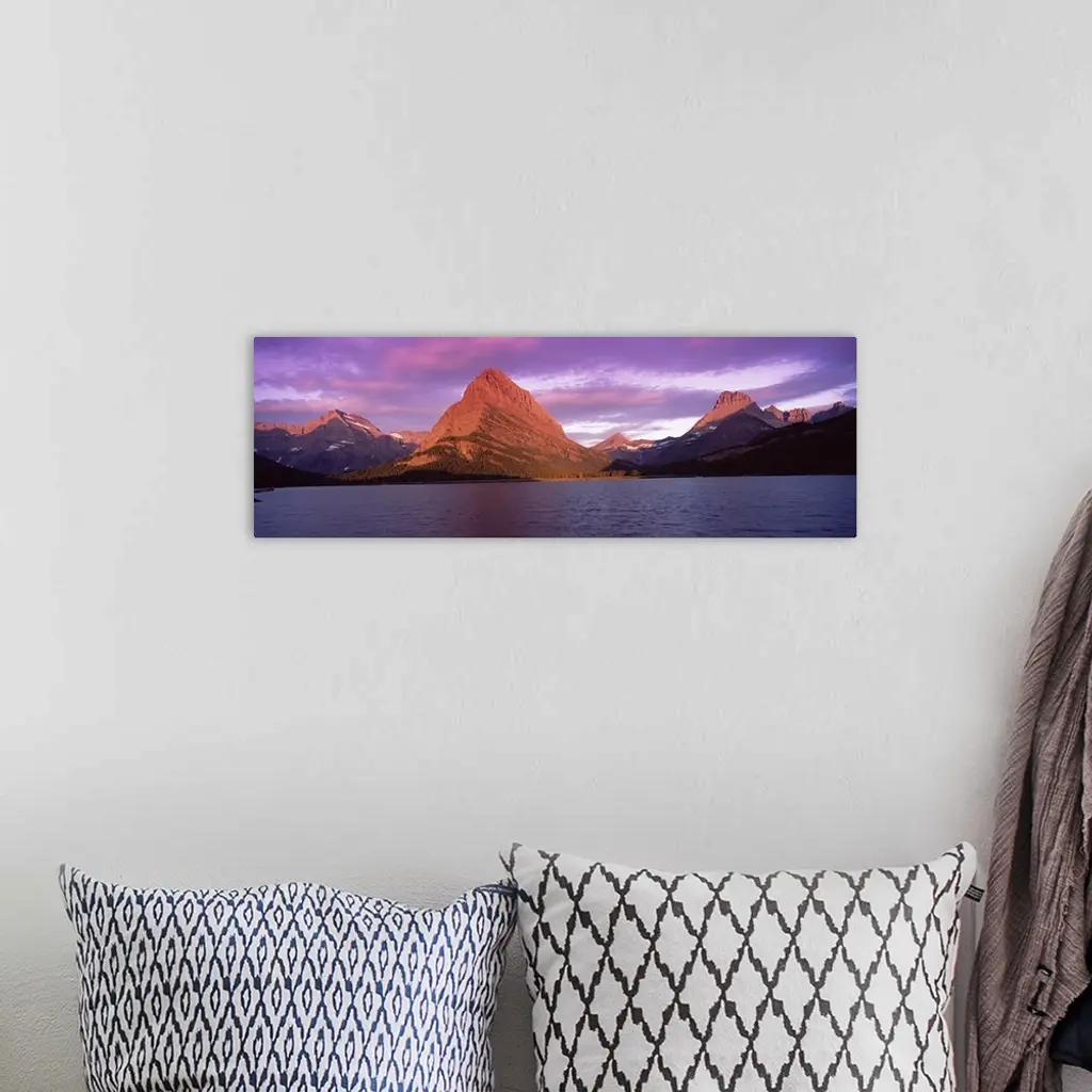 Lake with mountains at dusk, Swiftcurrent Lake, Many Glacier, US Glacier National Park, Montana, wall art for home and office decor. Discover canvas art prints, photos, mural, big canvas art and framed wall art in GreatBigCanvas.com's varied collections.
