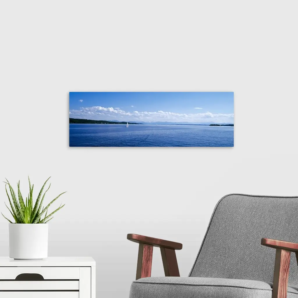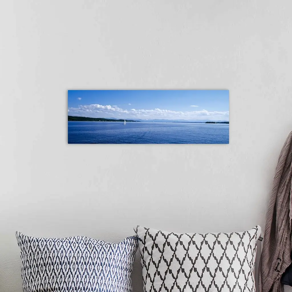 Lake with mountains in the background Lake Starnberg Bavaria Germany wall art for home and office decor. Discover canvas art prints, photos, mural, big canvas art and framed wall art in GreatBigCanvas.com's varied collections.