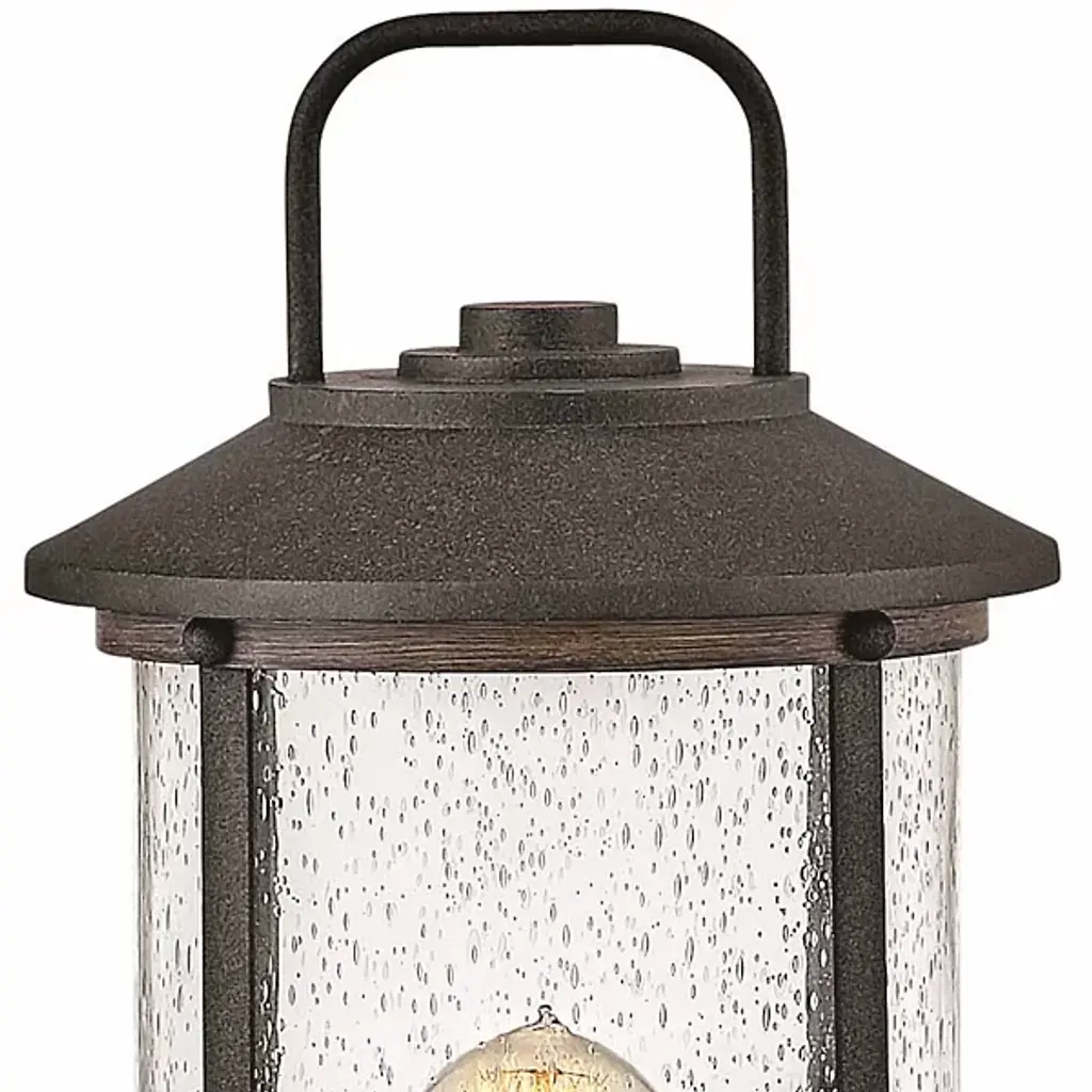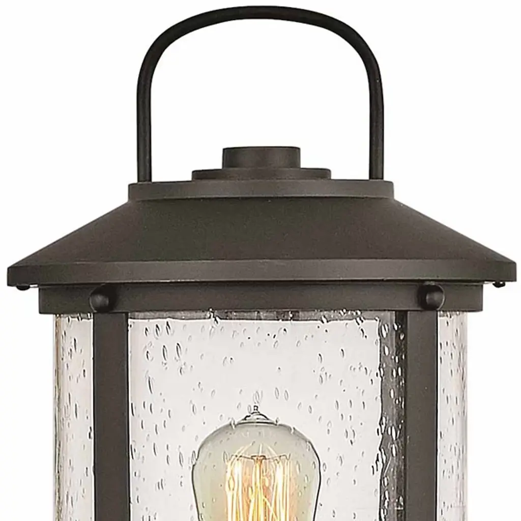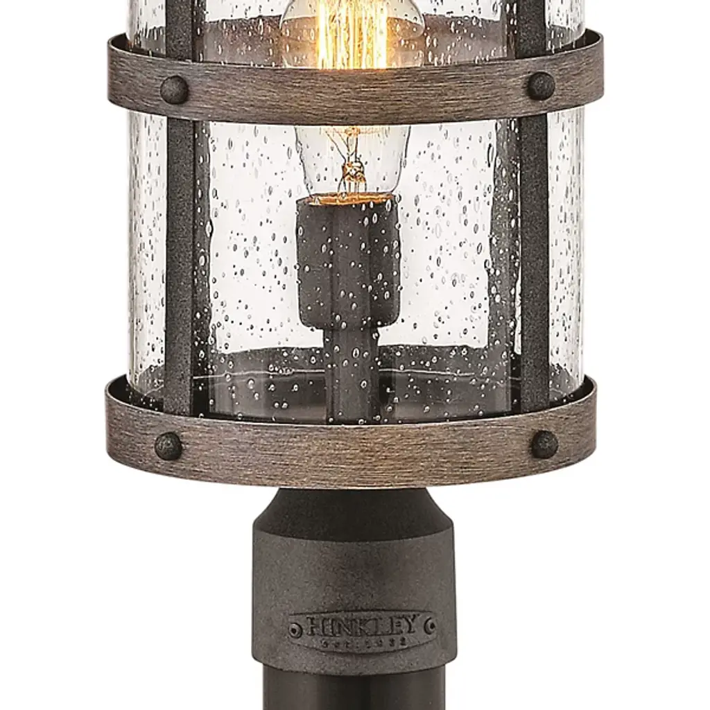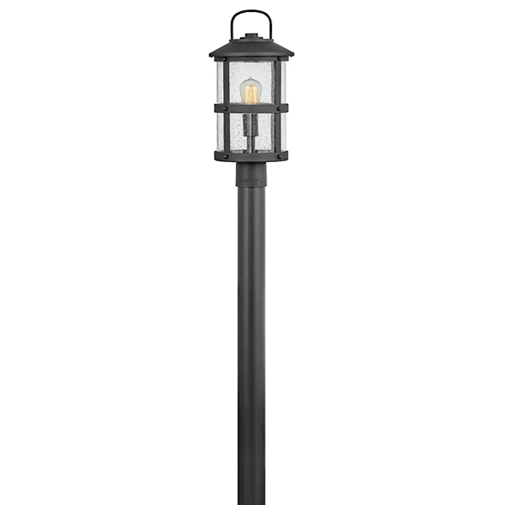 Create a pathway illuminated by a homey silhouette with the timeless design of the Lakehouse Outdoor Post Light from Hinkley Lighting. It's a modern take on the traditional lantern, complete with a charming handle, flaring hood, and rugged metal framework. Like the traditional lantern, its bulb sits safely away from the harshness of the seasons behind a caged design and a cylinder of glass. Warm light from its bulb radiates through the glass, leaving behind a glaze of subtly highlighted bubbles.