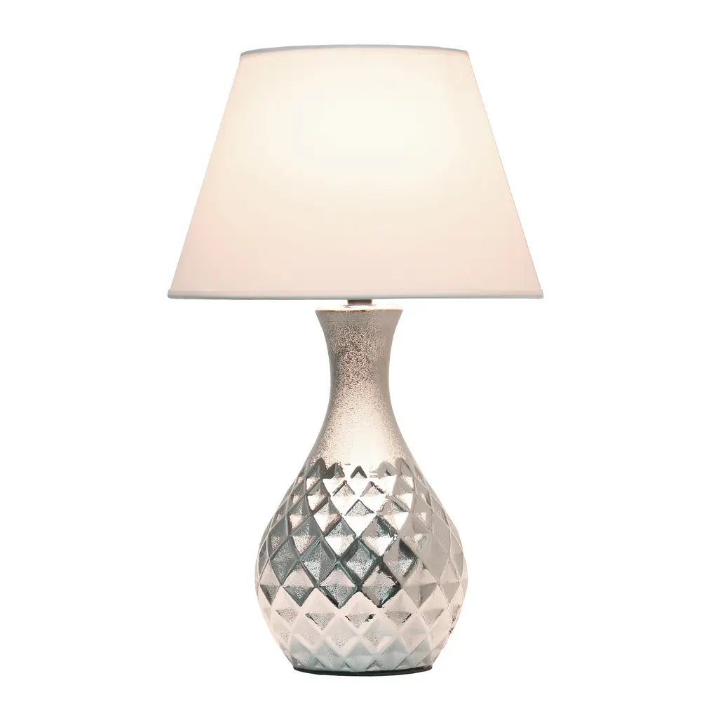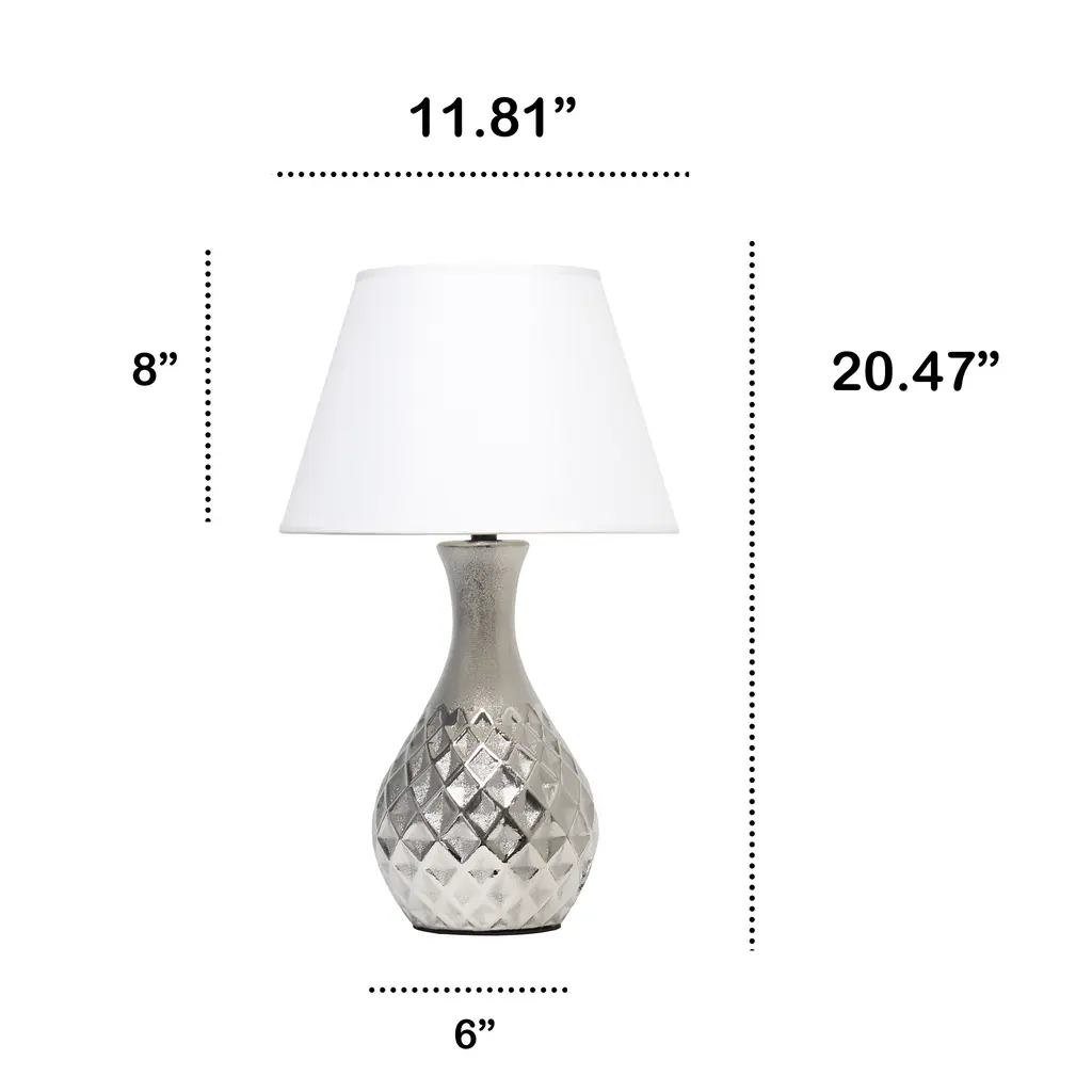 Lalia Home 20.47" Stylish Table Lamp With Diamond Pattern Base And Classic White Shade, Metallic Silver - Metallic Silver/white