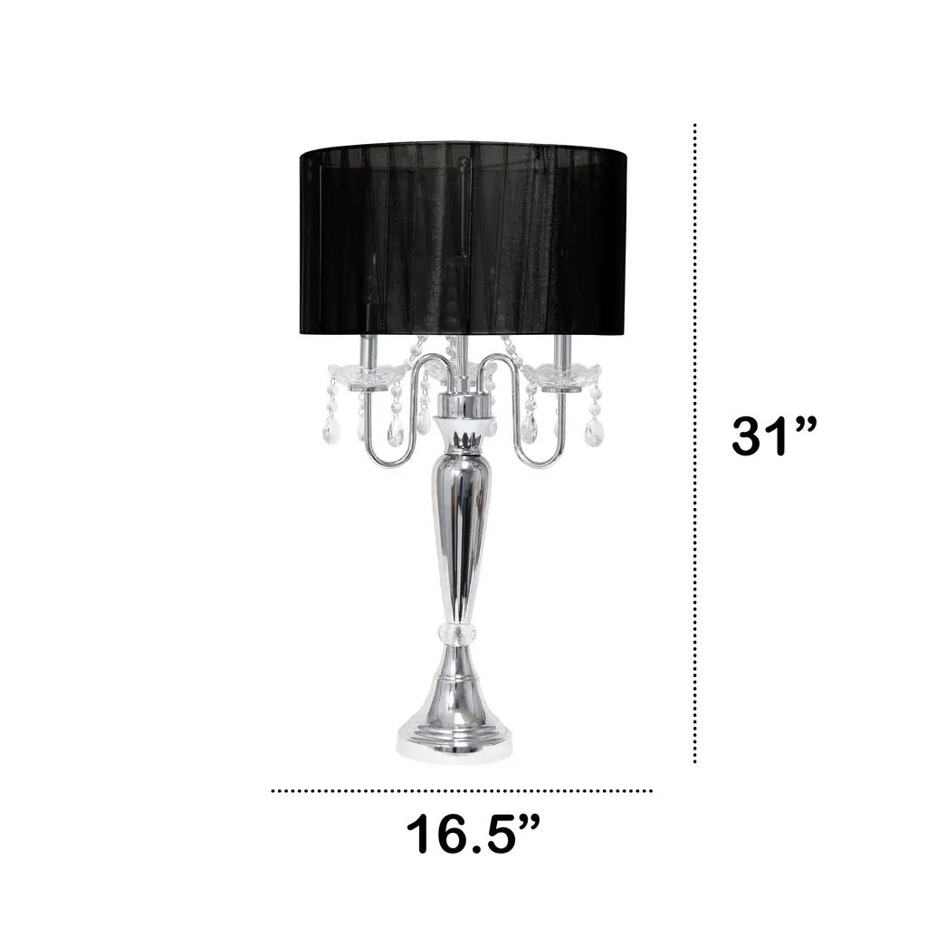 Lalia Home 31" Chrome Cascading Crystal Table Lamp - 31 - Chrome/black Shade