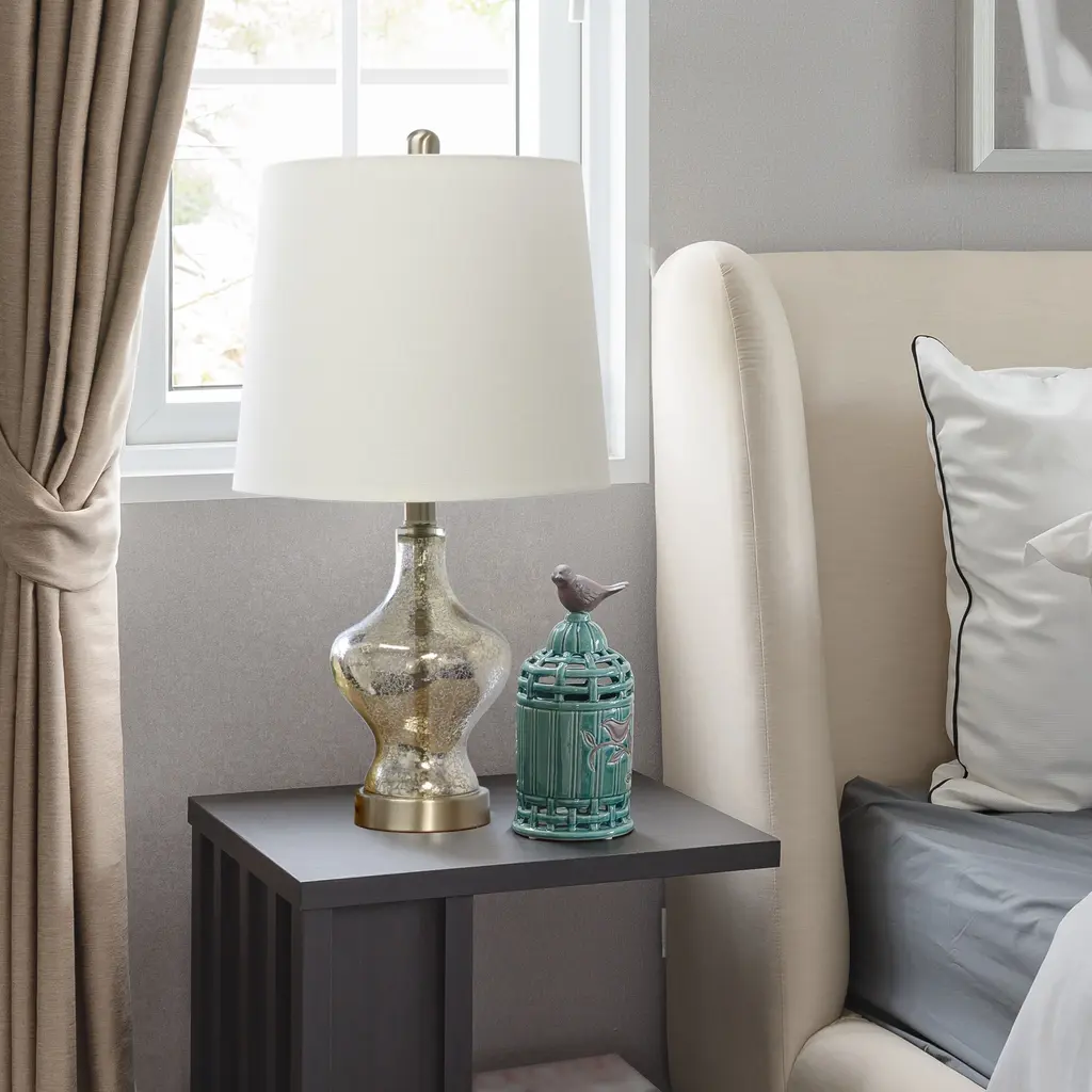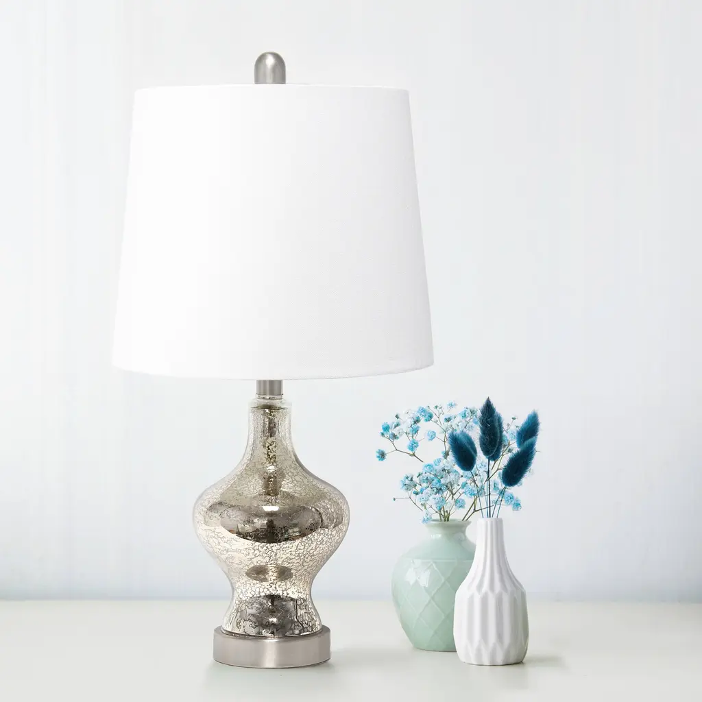 Lalia Home Paseo Table Lamp With White Fabric Shade, Mercury - 5.5"l X 5.5"w X 15"h - White/linen White