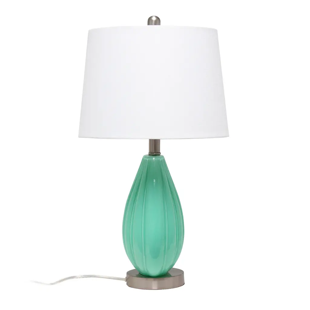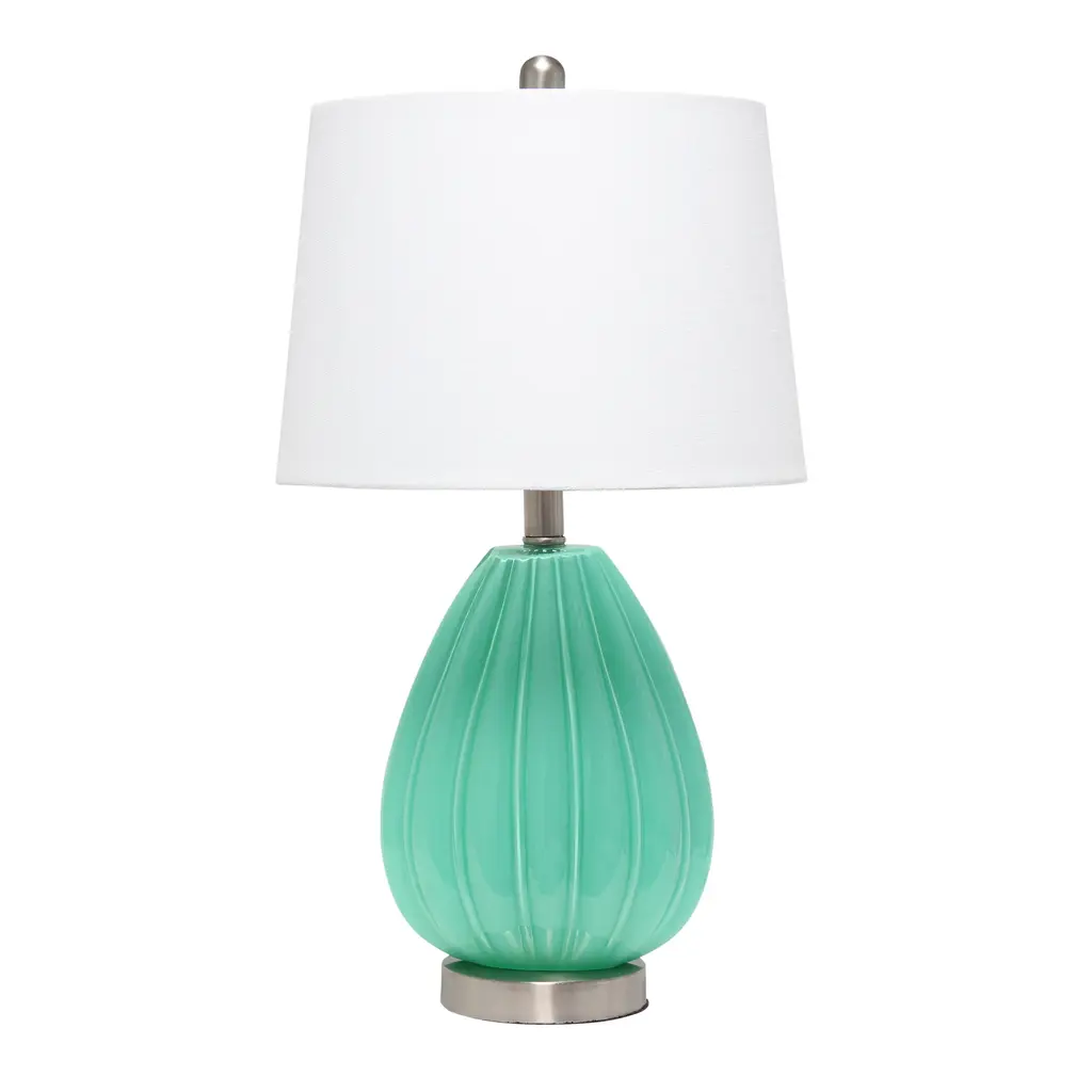 Illuminate your space with this chic and charming table lamp. The glass base is curvy and accentuated with a pleated design topped off with a white fabric shade. Perfect for your living room, bedroom, office, or anywhere you need to add a tasteful update!