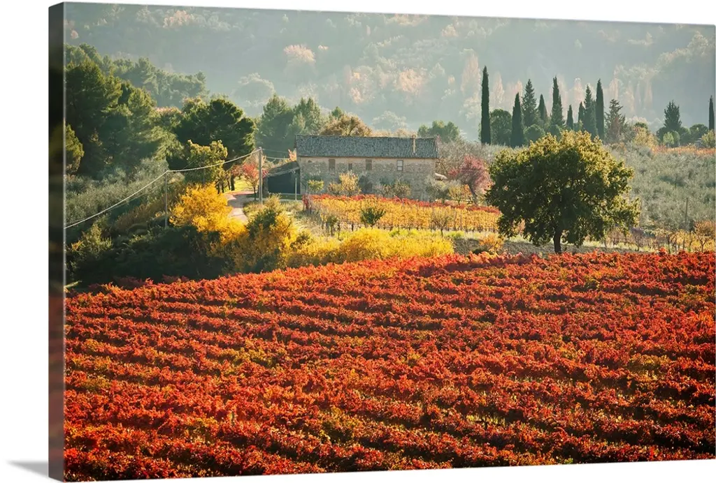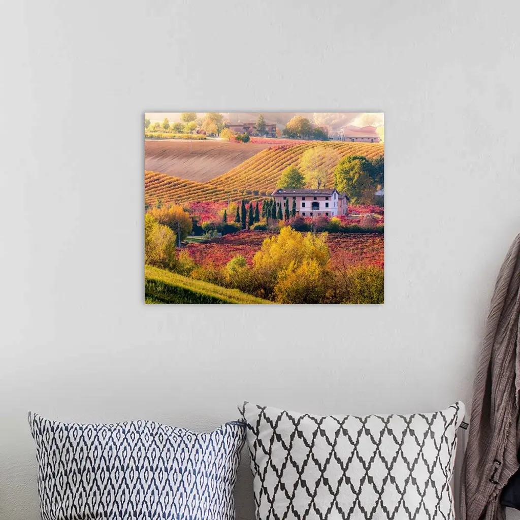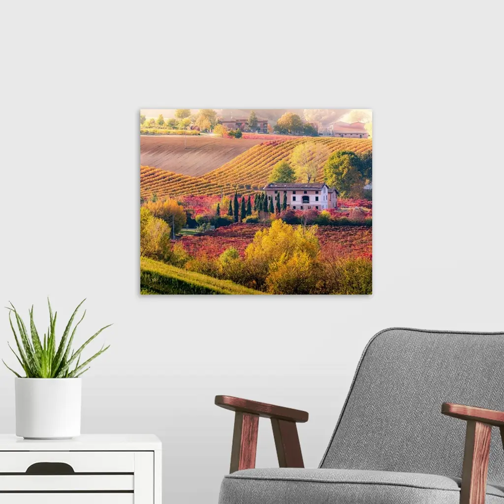 Lambrusco Grasparossa Vineyards In Autumn. Castelvetro Di Modena, Emilia Romagna, Italy