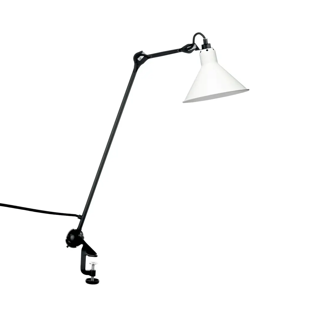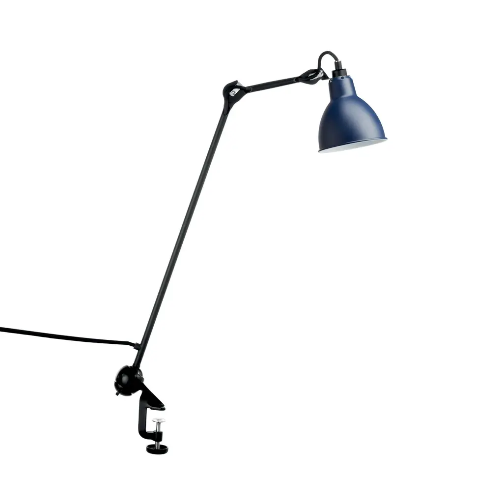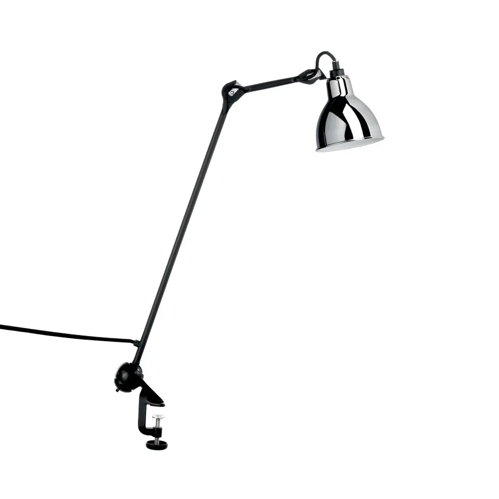Emblematic of the series, N°201 was an early success and widely adopted by architects when Lampe Gras was first introduced a century ago. Strikingly simple and ergonomically ahead of its time, the innovative articulated design was as useful as it was handsome. With a clamp base to fit most desktops, the task light pairs its black steel armature with a wide choice of finishes for the accompanying metal shade in either comic or round shape as desired.