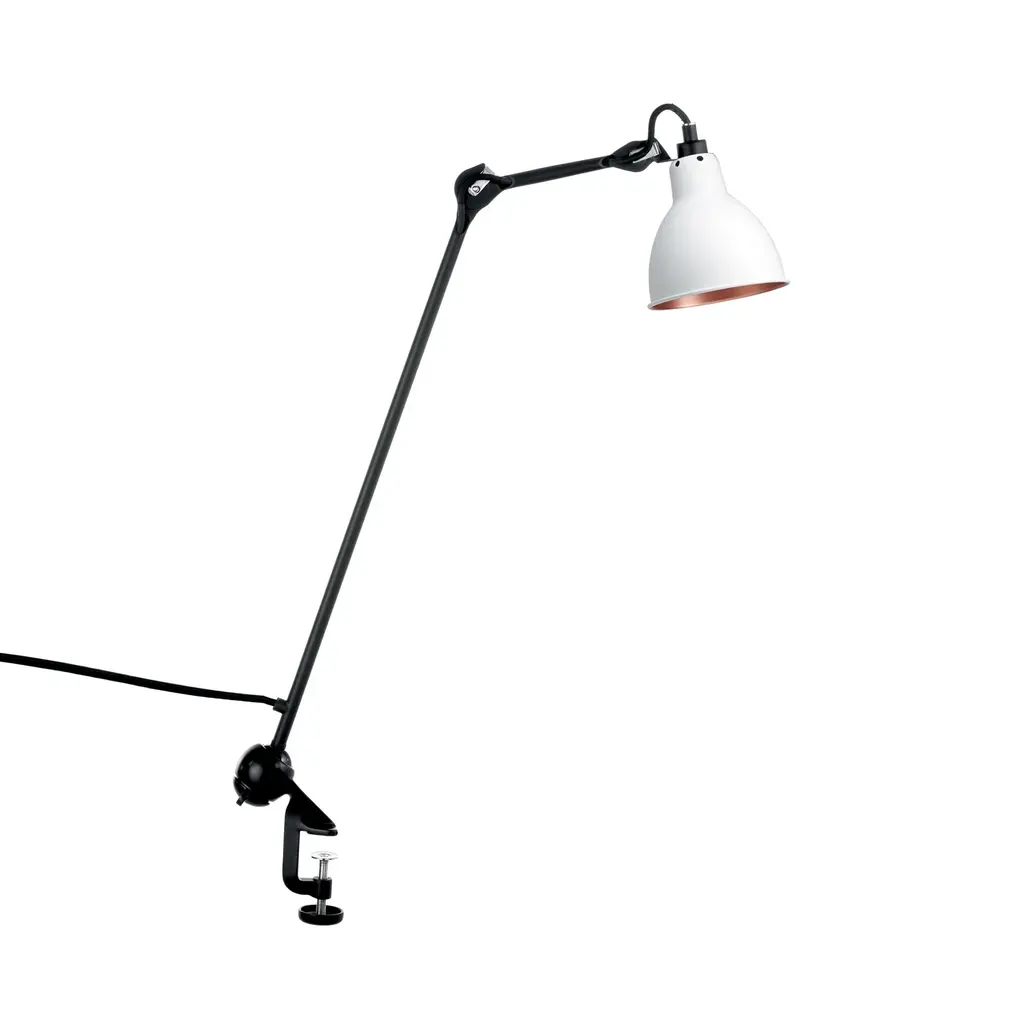 Emblematic of the series, N°201 was an early success and widely adopted by architects when Lampe Gras was first introduced a century ago. Strikingly simple and ergonomically ahead of its time, the innovative articulated design was as useful as it was handsome. With a clamp base to fit most desktops, the task light pairs its black steel armature with a wide choice of finishes for the accompanying metal shade in either comic or round shape as desired.