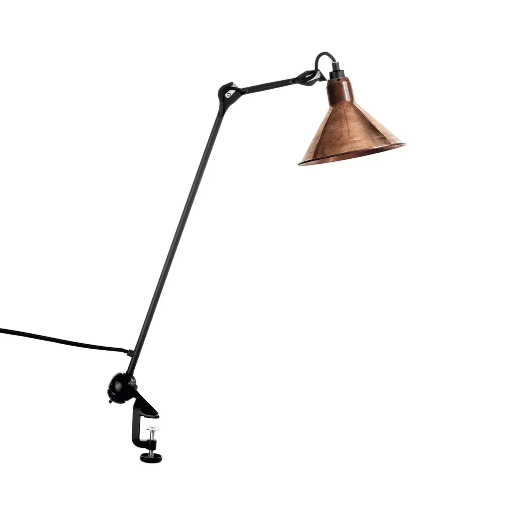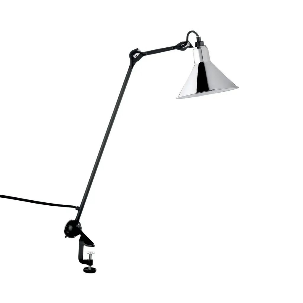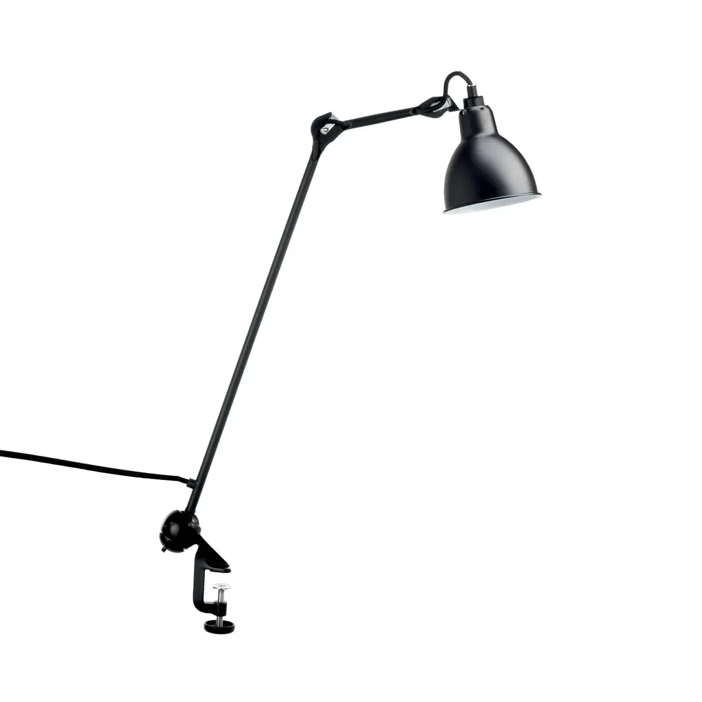 Emblematic of the series, N°201 was an early success and widely adopted by architects when Lampe Gras was first introduced a century ago. Strikingly simple and ergonomically ahead of its time, the innovative articulated design was as useful as it was handsome. With a clamp base to fit most desktops, the task light pairs its black steel armature with a wide choice of finishes for the accompanying metal shade in either comic or round shape as desired.