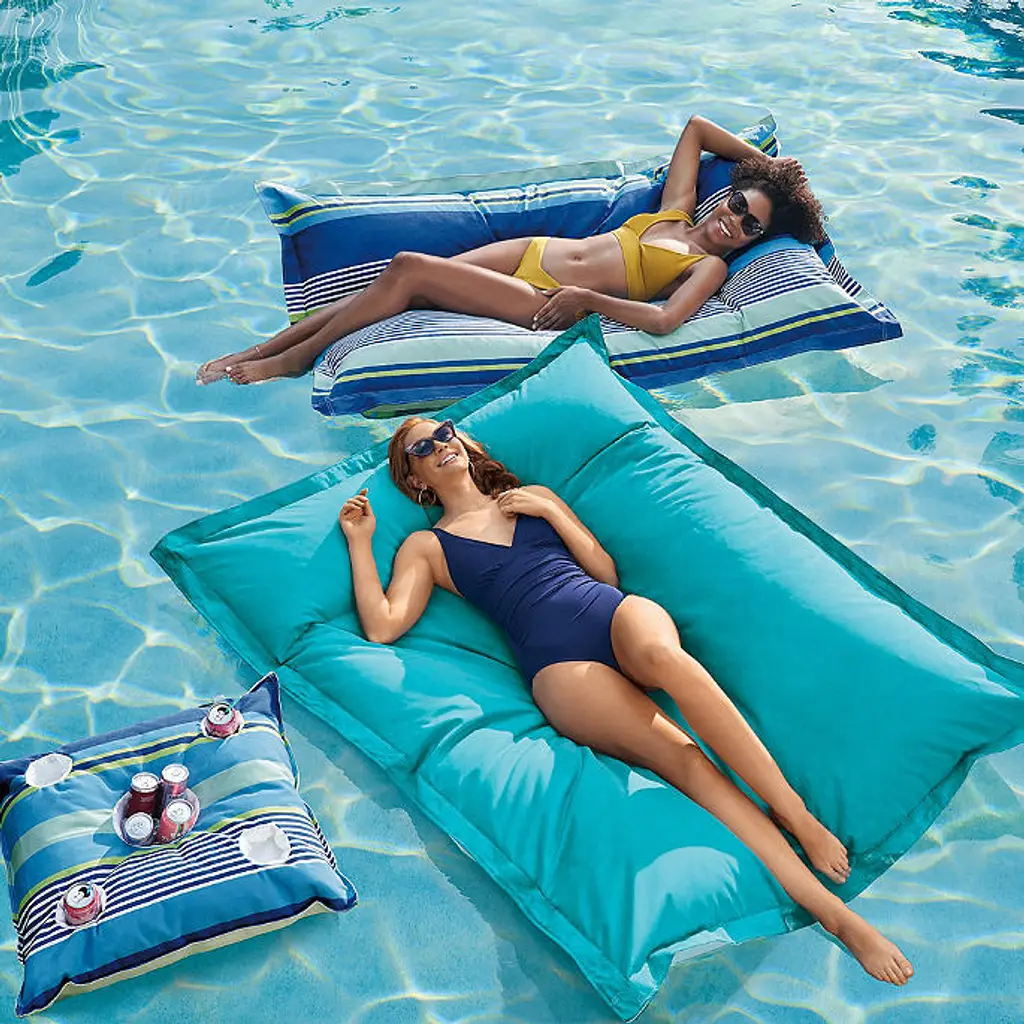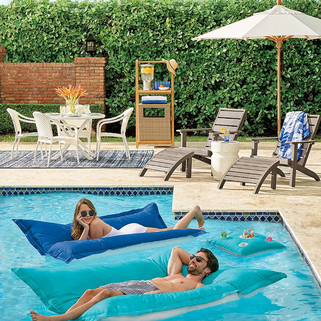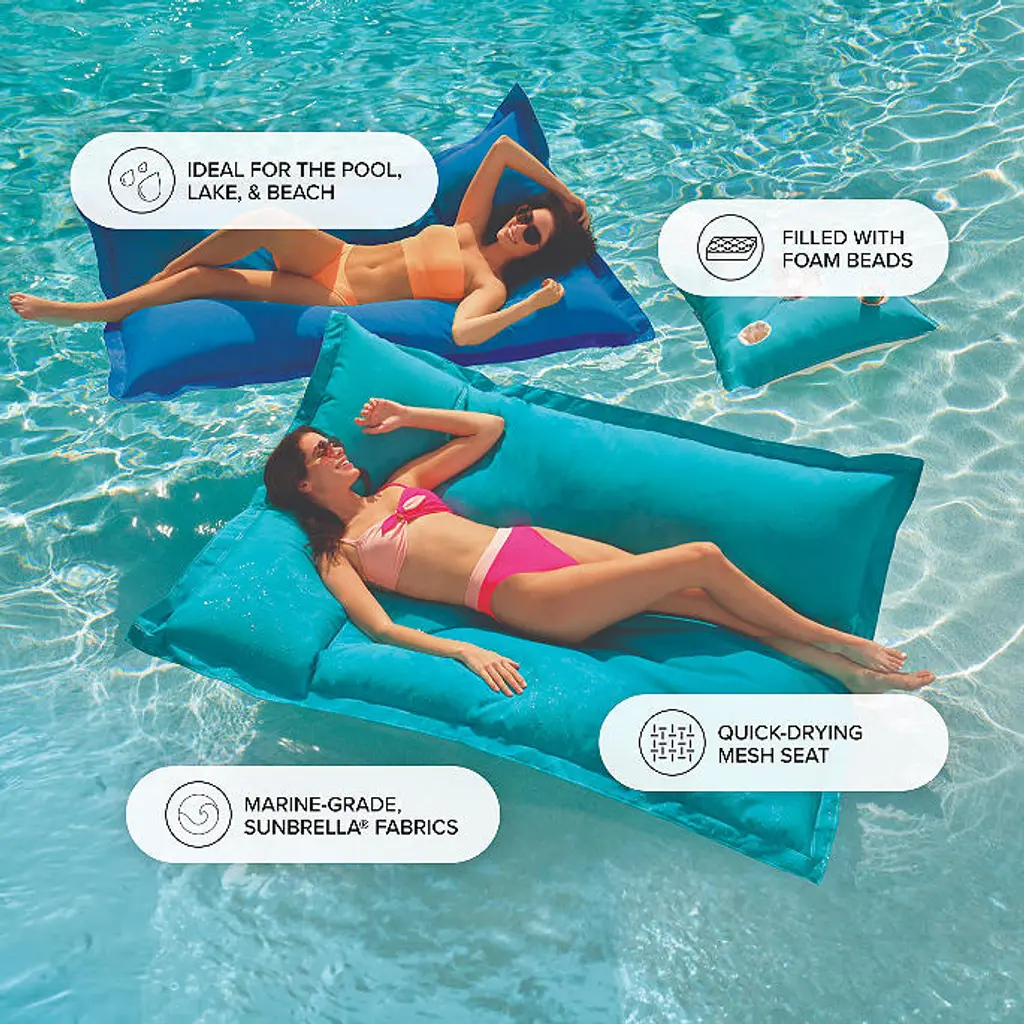 Designed exclusively for Frontgate, our Luxe Edition King Lana Float is the ultimate in cushioned comfort in the water or on the deck. Boasting features you won’t find anywhere else, these marine-grade, fade-, stain-, and mildew-resistant Sunbrella® fabric cushions are filled with buoyant foam beads that gently cradle the body while you relax in the water. Designed exclusively for Frontgate, the sewn-in pillow on the King Lana provides comfortable head support without the need for a cumbersome neck roll Mesh backing allows for quick draining and fast drying Bead filling resists mold and mildew King Lana floats most comfortably with two people Built-in strap allows for easy removal from water or can be used to connect a drink caddy Chlorine and salt-water safe View Sunbrella® cleaning instructions King Kai Float will support up to 600 lbs Sewn in Dominican Republic from USA materials; filled and finished in USA WARNING: This product can expose you to chemicals including Di(2-ethylhexyl) phthalate (DEHP), which is known to the State of California to cause cancer and birth defects or other reproductive harm. For more information go to www.P65Warnings.ca.gov Please note: This product cannot be shipped to a PO box. At Frontgate, our primary focus is quality. We guarantee that every product we sell will stand up to the supreme test – our customers' satisfaction. To learn more about our policies, visit our Shipping & Processing, Returns & Exchanges and Warranty & Price Guarantee pages.