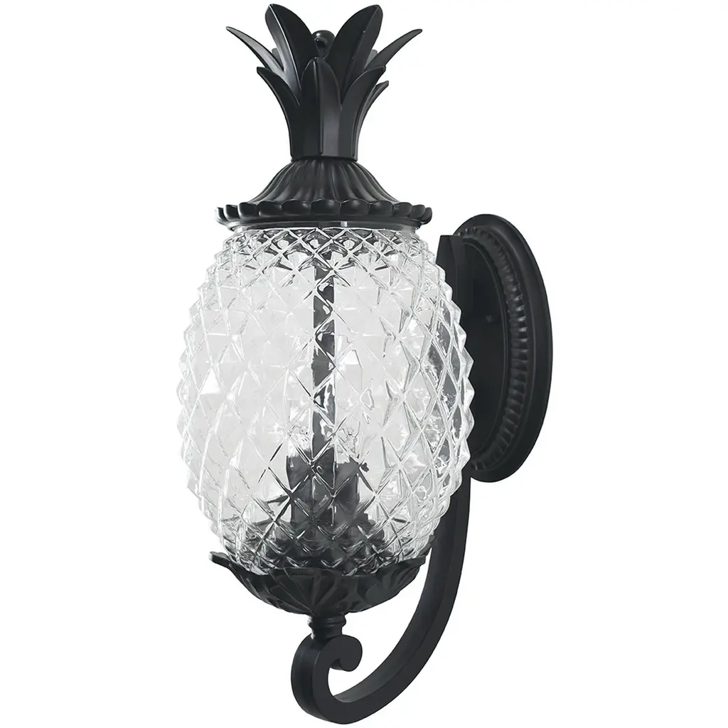 Lanai embodies southern charm. Welcome guests with this fun tropical fruit shaped lantern. This popular collection is constructed of cast aluminum with clear, textured glass in the shape of a pineapple.