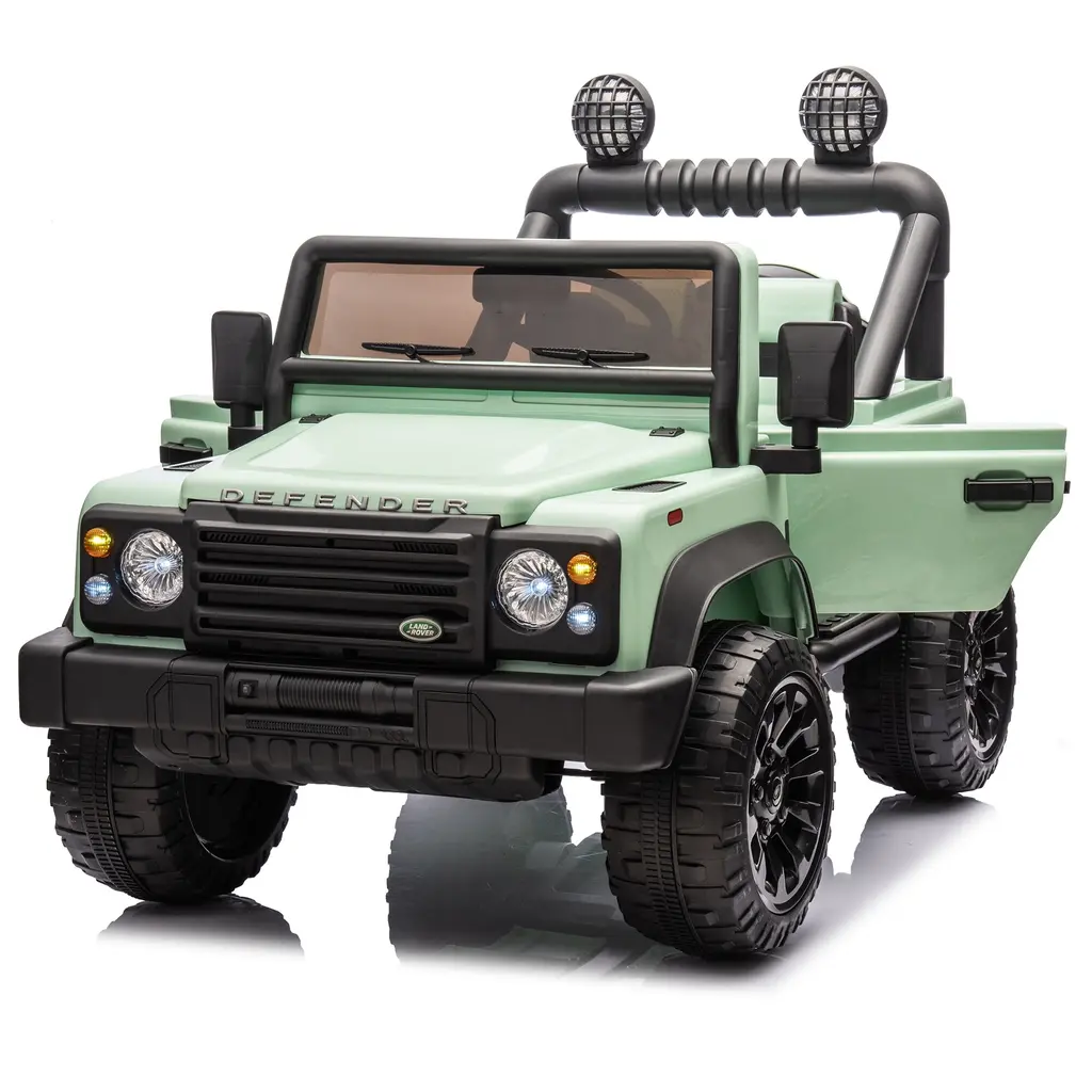 Product Overview: Take your child's playtime to the next level with this officially licensed Land Rover Defender Ride-On SUV. Designed for kids aged 3 to 7, this ride-on car combines luxury and adventure. Featuring four-wheel suspension, Bluetooth connectivity, LED lights, and a spacious seat, it offers both comfort and excitement. With a 2.4G remote control for parental guidance and adjustable speed settings, this vehicle provides a safe and enjoyable experience for your young driver.Product Features:Specifications:Weight & Dimensions:Suitable Scenarios: Perfect for outdoor play in gardens, backyards, and parks, this Land Rover Defender Ride-On provides young drivers with a taste of adventure and luxury. Its dual motor drive and suspension system make it suitable for various terrains, offering a smooth and controlled ride wherever they go.Notes: Please supervise children during use. Ensure the battery is fully charged before the initial ride, and refer to the included assembly guide for safe setup. For extended battery life, charge only with the included charger.
