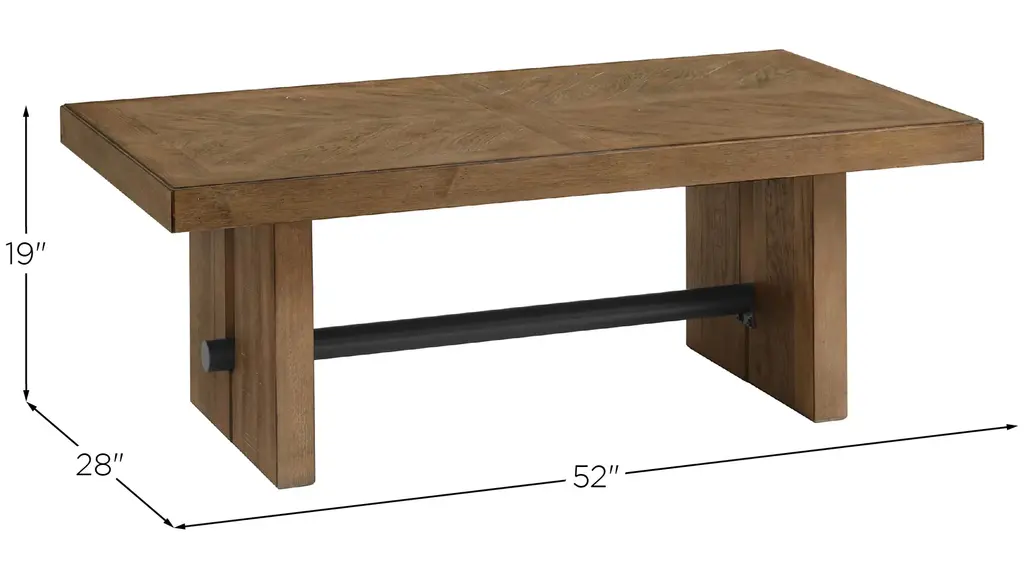 The Landmark Living Room Collection has beautifully veneered Table tops that feature a very unique sunburst pattern. The light saw mark accents and weathered oak finish gives this sleek modern collection a classic rustic feel.