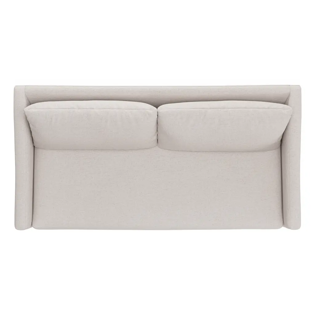 A minimal look with maximum impact. The Landry marries laid back comfort with elegant details to produce a loveseat that is as comfortable hosting movie night as it is a cocktail hour. Sloping sleigh-style arms and clean straight lines make it simple to pair this loveseat with many different styles. Try it with a warm white backdrop, against a wildly patterned rug, or draped with your favorite blanket. The Landry is easygoing style at its best.
