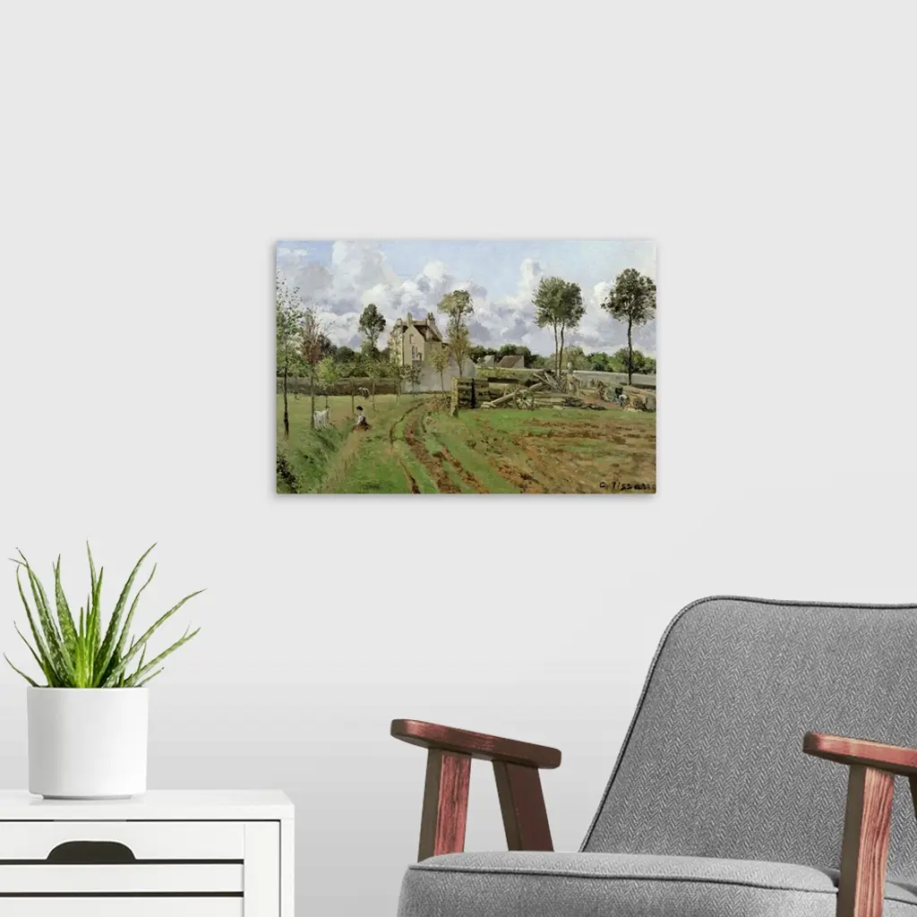 XIR16622 Landscape, Louveciennes, c.1872 (oil on canvas) by Pissarro, Camille (1831-1903); 51.5x81 cm; Musee d'Orsay, Paris, France; Giraudon; French, out of copyright