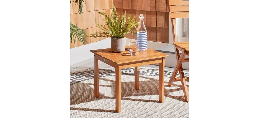 Bring summer fun to any outdoor entertaining space with this Langer End Table. A perfect accent to outdoor sofas or patio chairs, Langer's natural eucalyptus wood frame is a timeless investment in leisure living.