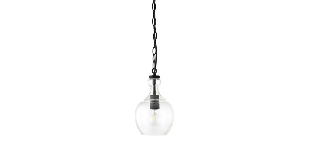Soft industrial simplicity and farmhouse charm give this mini pendant it's clean look. Featuring clear glass with a textured black finish.
