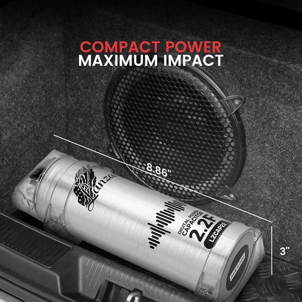 Enhance your car audio system's performance with this 0.2 Farad Digital Power Capacitor, designed to deliver consistent and stable power to your amplifier. This capacitor helps to smooth out voltage spikes and prevent drops during peak power demands, ensuring your sound system operates at its best, even during intense bass hits. The digital display provides real-time monitoring of voltage levels, so you can keep an eye on your system's performance with ease. With its compact design, this capacitor fits seamlessly into most vehicle setups, making it a perfect addition for those looking to upgrade their audio experience without compromising space.