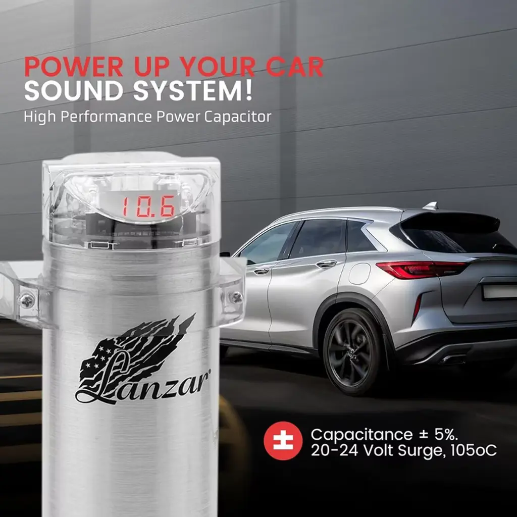 Lanzar 0.2 Farad Digital Power Capacitor - High-performance Car Audio Accessory With Red Digital Display