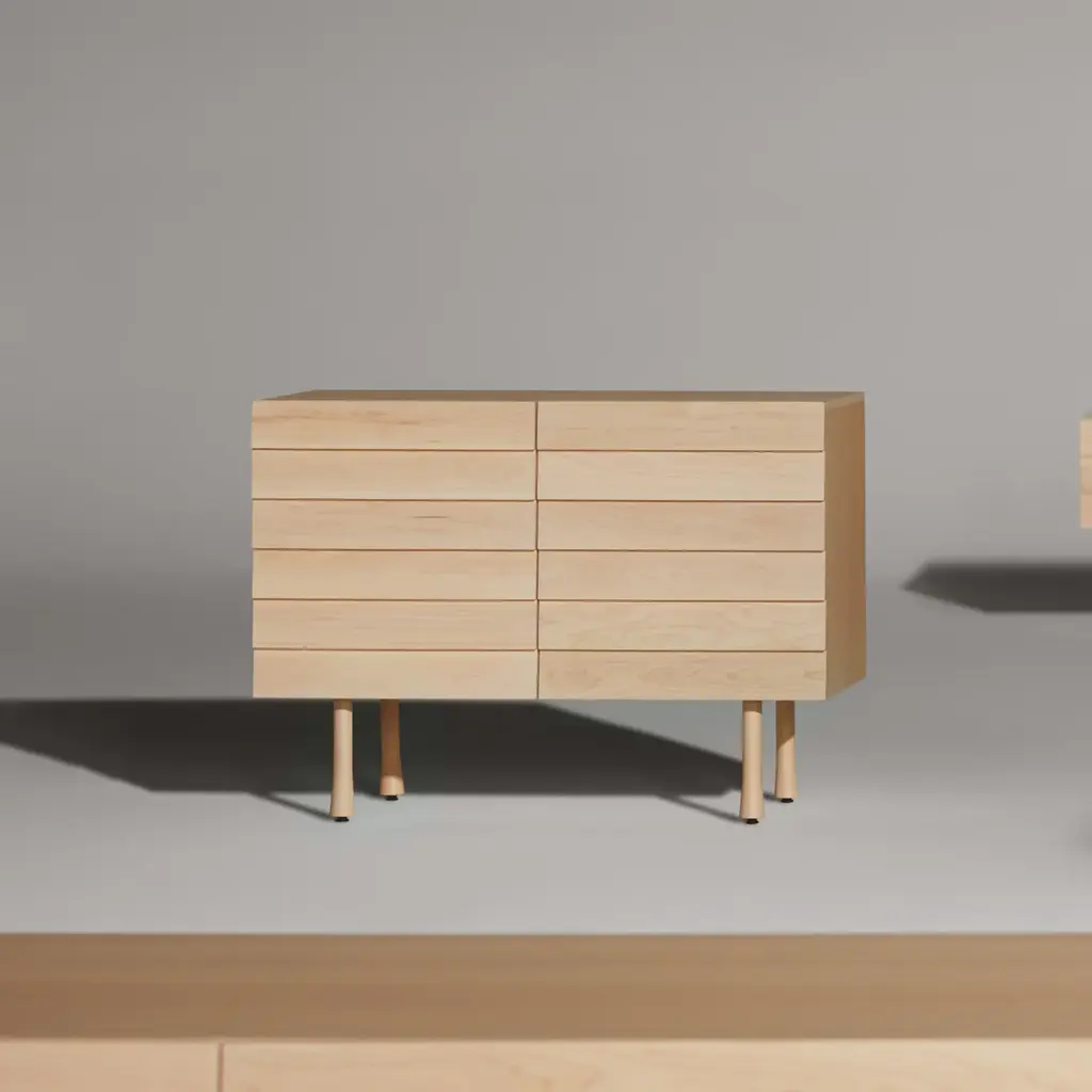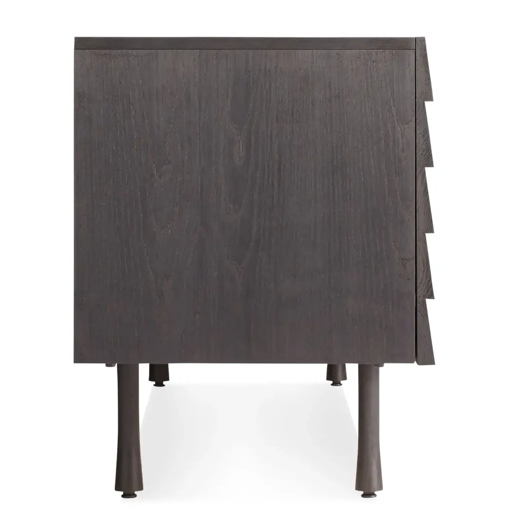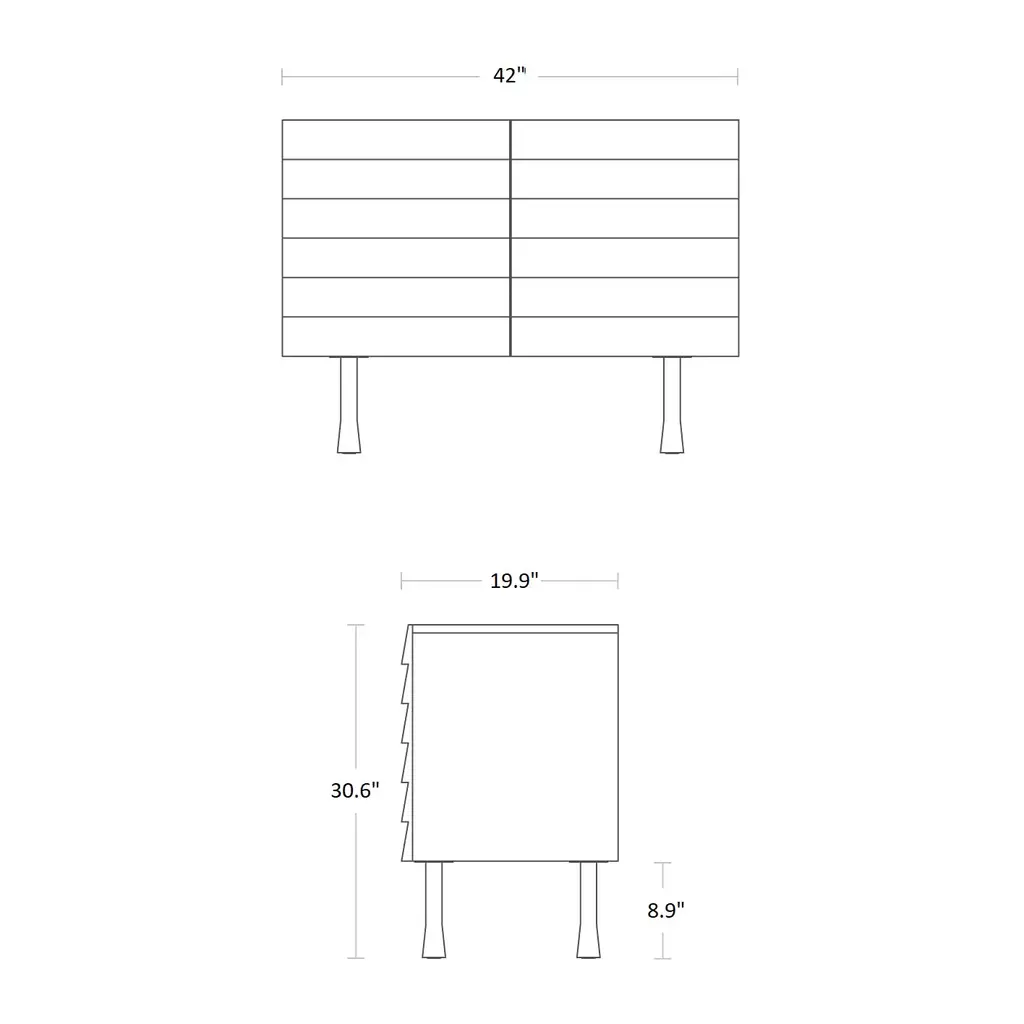 Overlapping wood drawer and door fronts give the collection its name, while elegant wood finishes and a scene-stealing leg bring the visual charisma. With soft close doors. Features