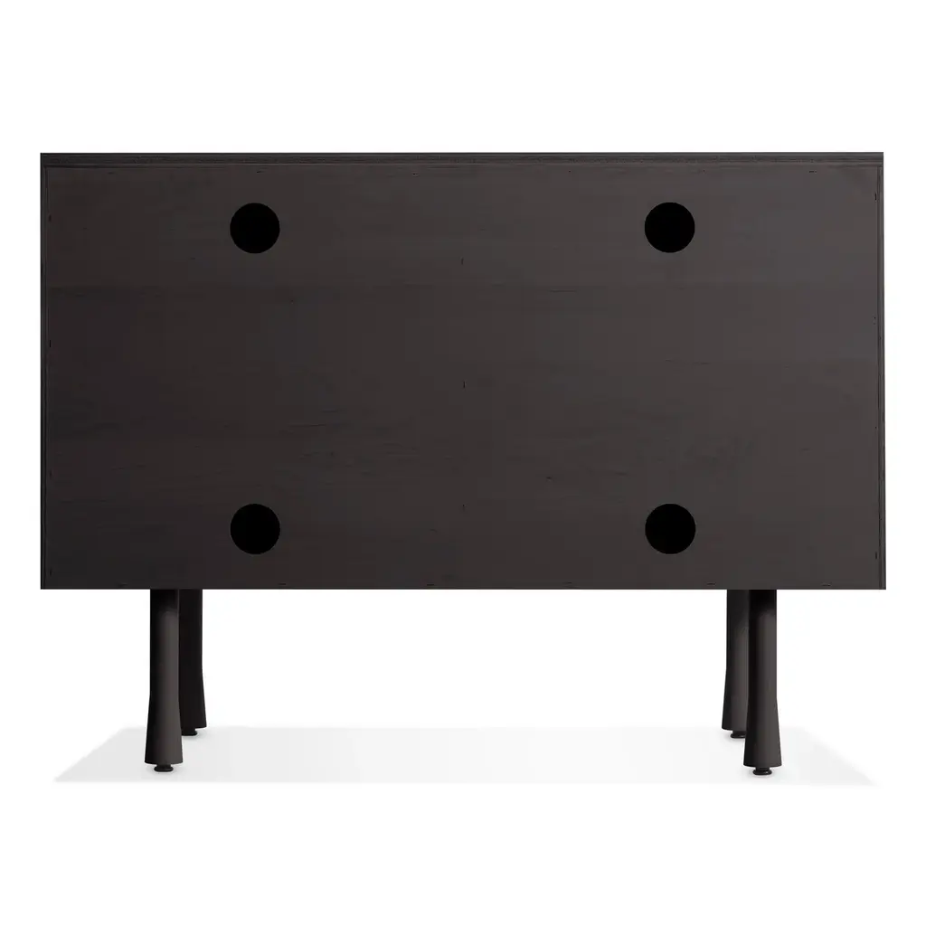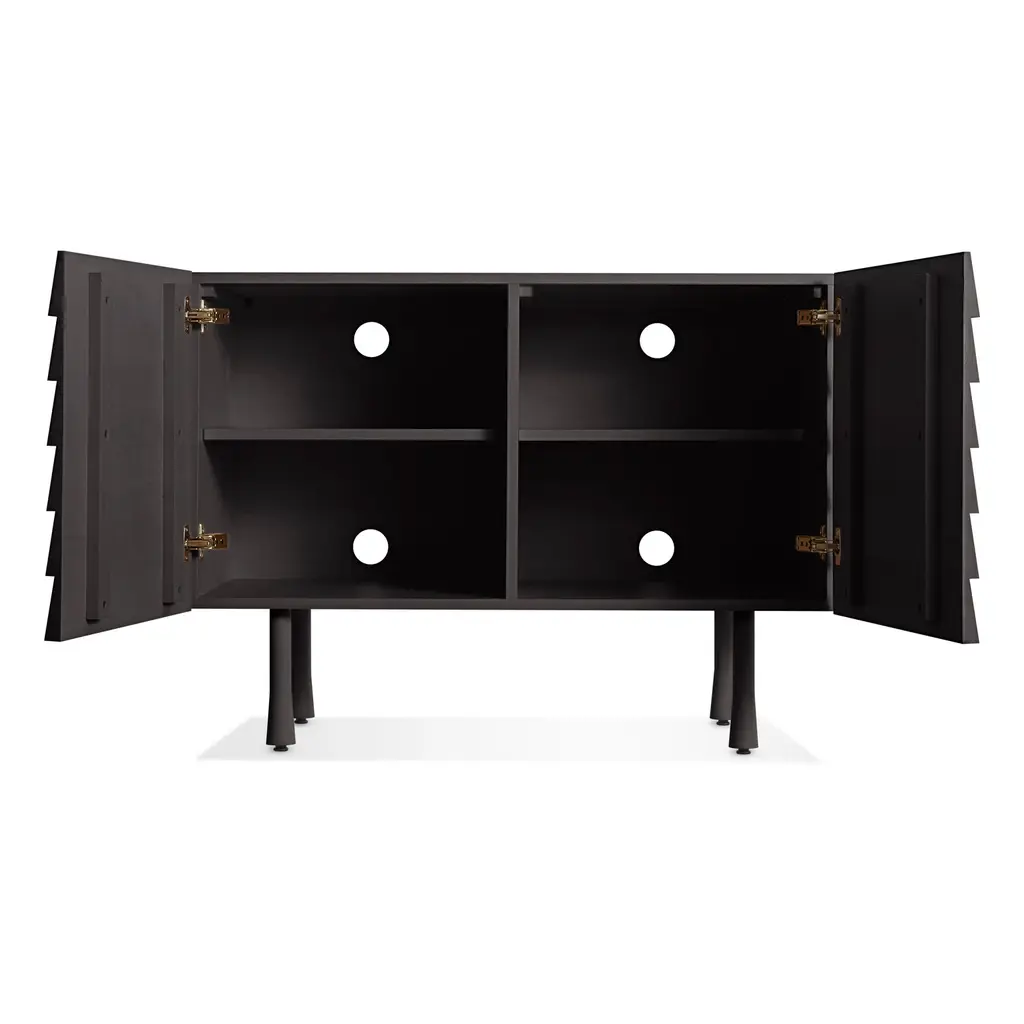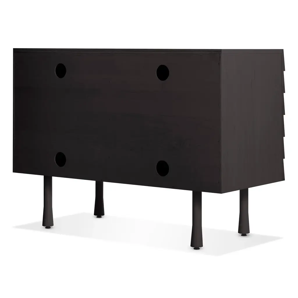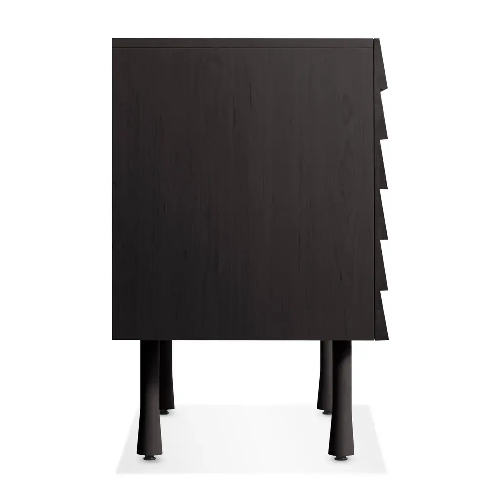 Overlapping wood drawer and door fronts give the collection its name, while elegant wood finishes and a scene-stealing leg bring the visual charisma. With soft-close doors.