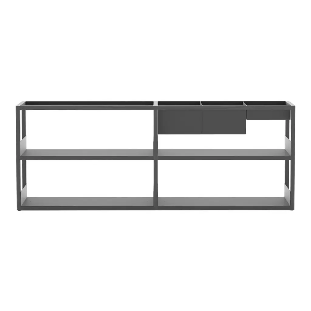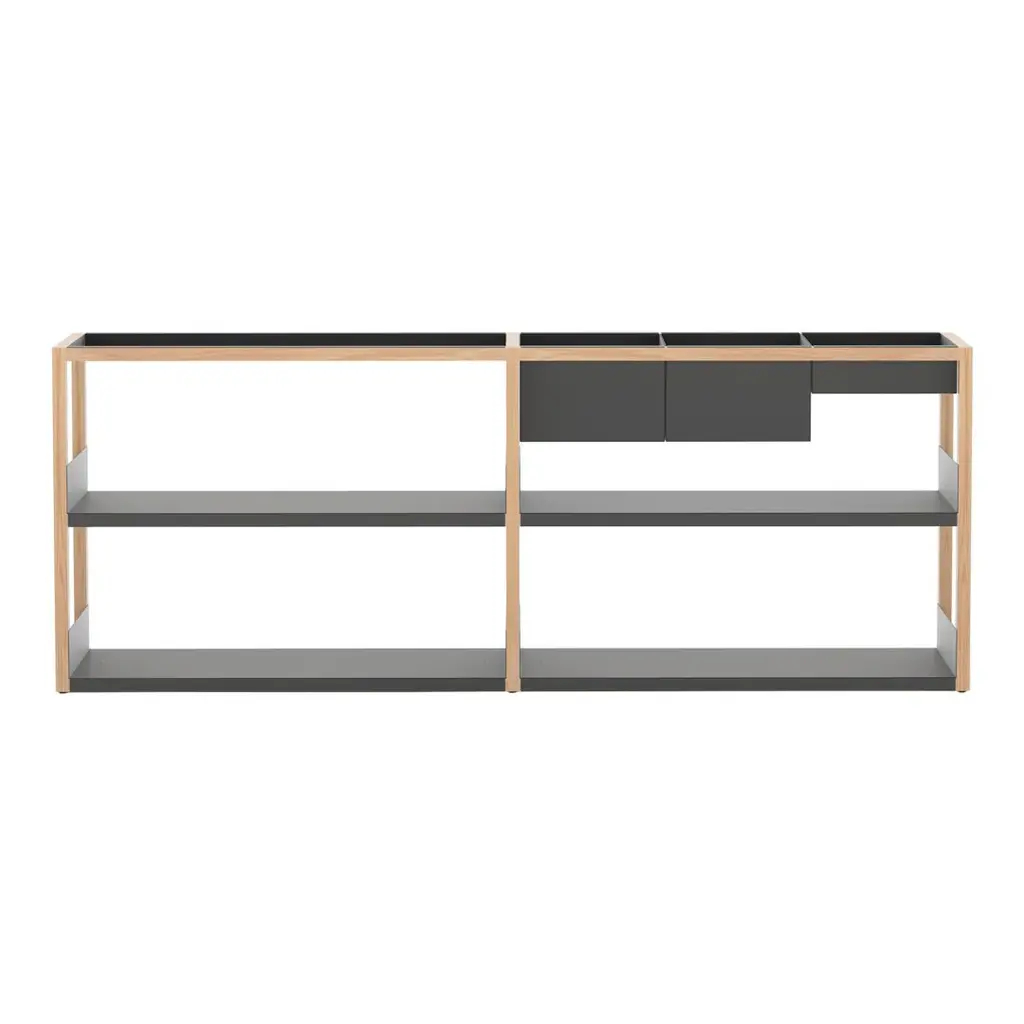 Flexible shelving system, available in three heights with a variety of component configurations. The width can be increased by adding extension units and more metal components. Shelving Components: Low Frame - [1] Low Extension Frame - [1] Deep Box - [2] Shallow Box - [1] Tray Shelf - [1] Bookshelf (U-shaped to keep books in place) - [4] Suitable for Contracts use. Assembly required. 1 year warranty for manufacturing defaults.