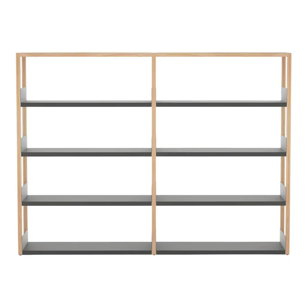 Flexible shelving system, available in three heights with a variety of component configurations. The width can be increased by adding extension units and more metal components. Shelving Components: Medium Frame - [1] Medium Extension Frame - [1] Bookshelf (U-shaped to keep books in place) - [8] Tray Shelf - [2] Suitable for Contracts use. Assembly required. 1 year warranty for manufacturing defaults.