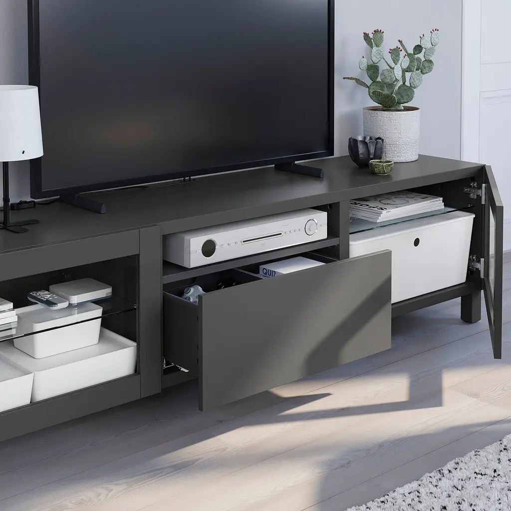 LAPPVIKEN Drawer front - dark gray 23 5/8x10 1/4 ". Drawers make it easy to keep your things organized. To be completed with BESTÅ drawer frame 23⅝X5¾X15¾" and BESTÅ drawer runner, sold separately. May be completed with knobs or handles, sold separately.