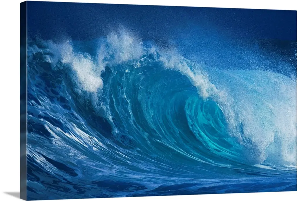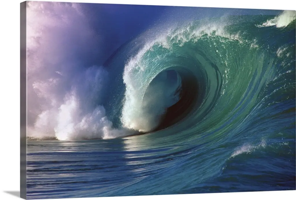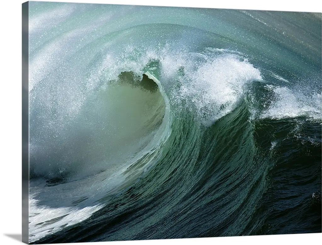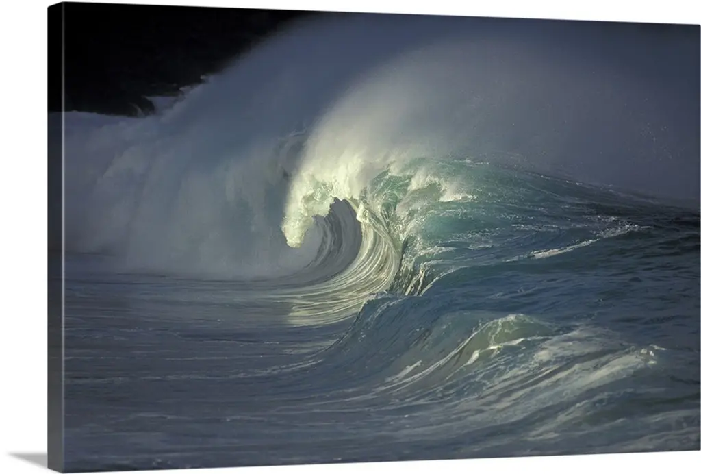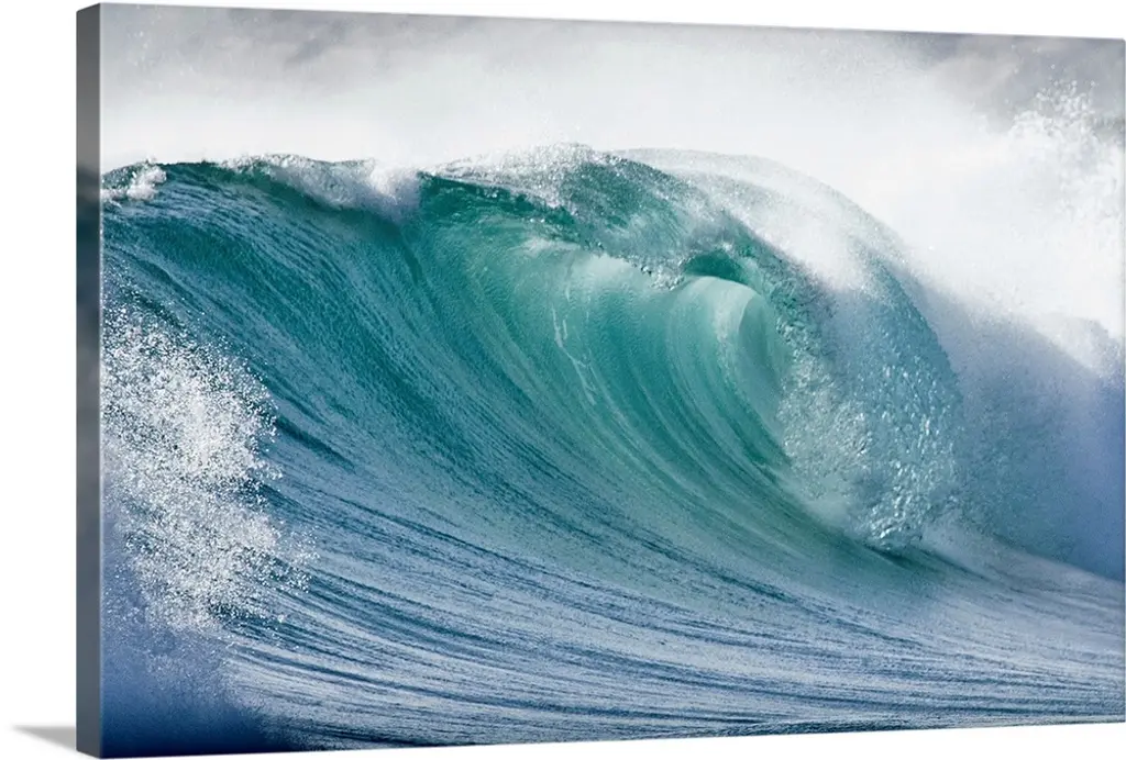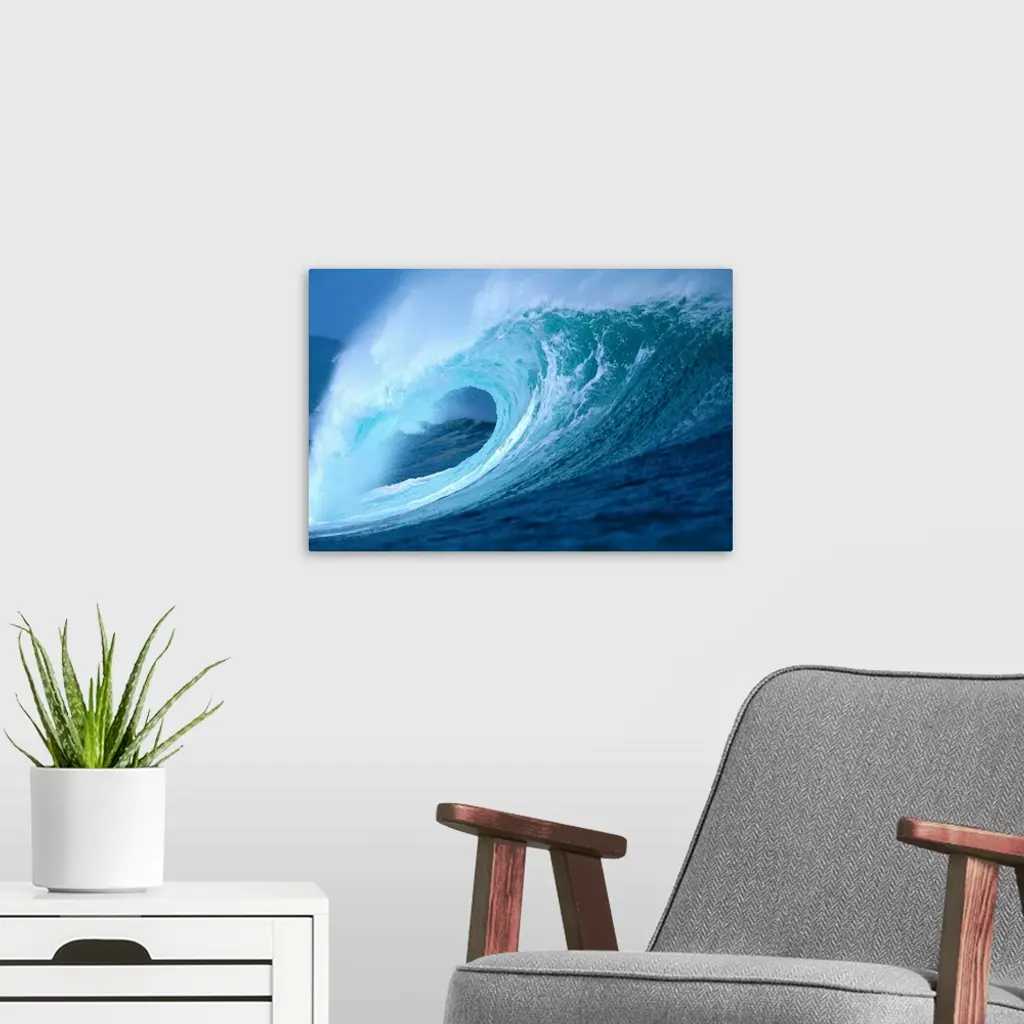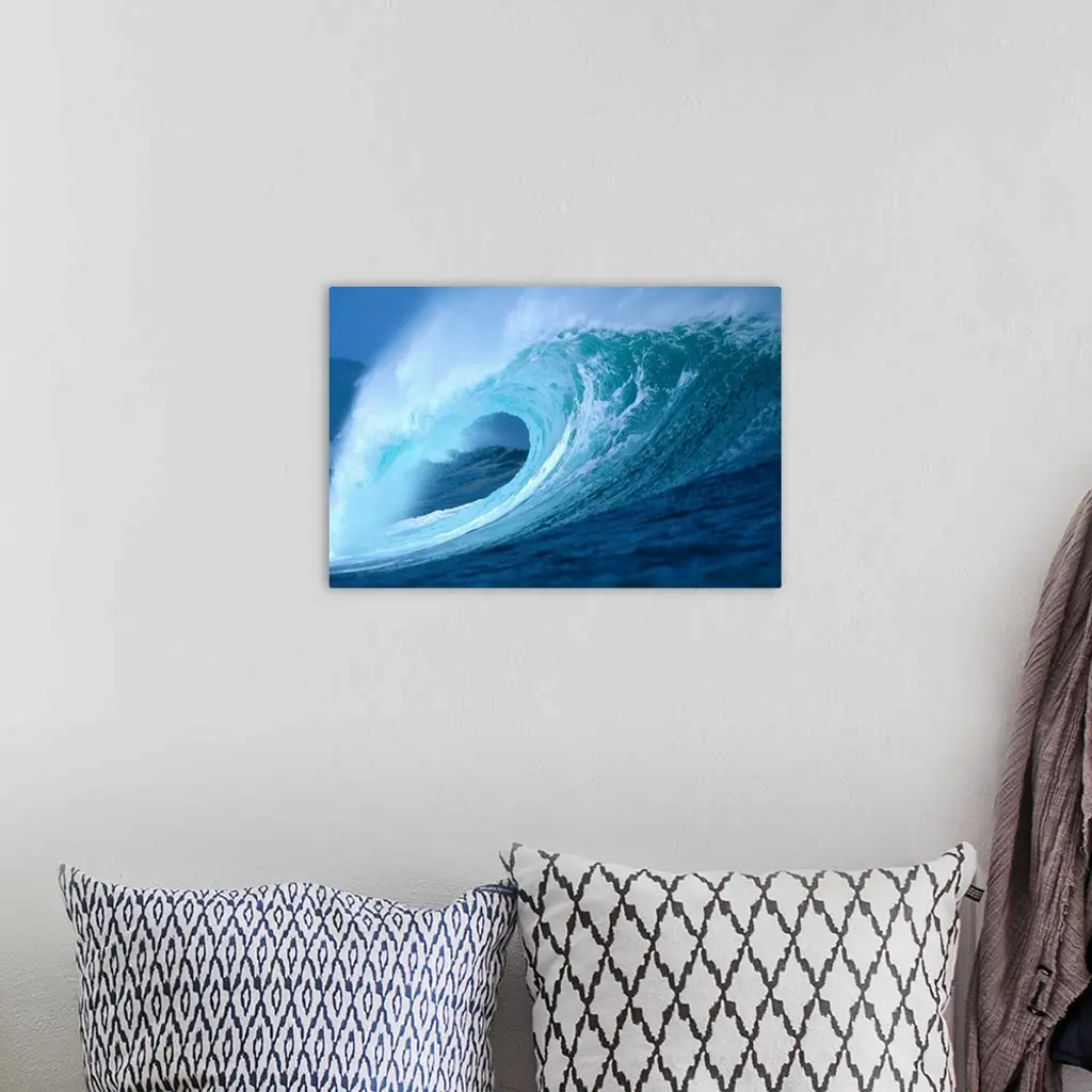 Large Aqua Wave, Curling, With Spray And Whitewash wall art for home and office decor. Discover canvas art prints, photos, mural, big canvas art and framed wall art in GreatBigCanvas.com's varied collections.