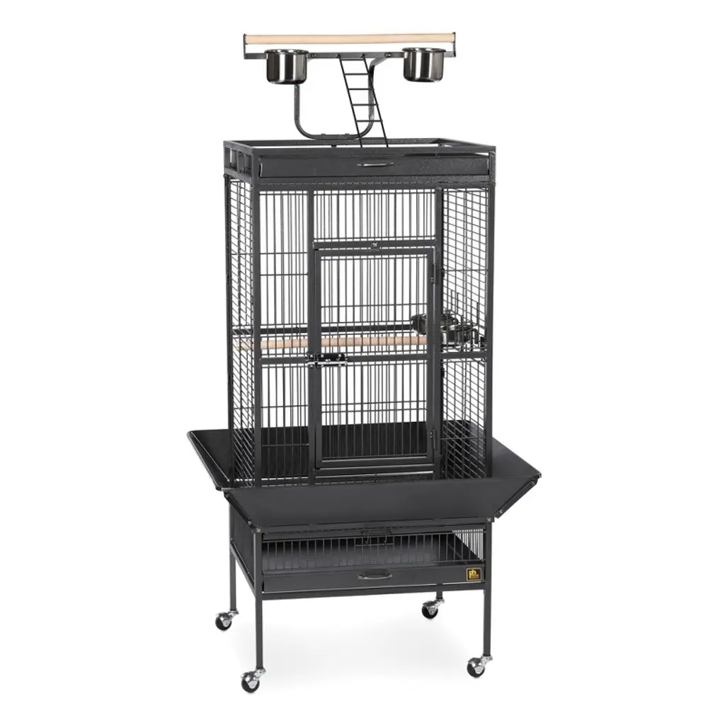 Premium Wrought Iron Construction:Crafted from industrial-grade, powder-coated wrought iron, this bird cage meets the latest safety standards. The high-temperature forging combined with precise welding creates a durable structure that withstands chewing, climbing, and banging, providing a secure and lasting home for your feathered friends.Parrot Cage with Rooftop Play Area:Designed in collaboration with avian behavior experts, this cage features a rooftop playground equipped with a textured bamboo ladder and a spacious elevated platform. It offers excellent opportunities for exercise and mental stimulation. Inside, staggered perches at different heights replicate natural forest canopy layers, creating an environment that encourages natural behaviors.Smooth and Stable Mobility:Fitted with four heavy-duty ball casters, the cage can be easily moved across various floor types with minimal stress to your birds. Two lockable front wheels ensure stability on inclines, while a reinforced base plate evenly distributes weight to protect your floors from damage, making it suitable for all surfaces.User-Friendly Cleaning Features:The cage includes two quick-release trays for hassle-free waste removal and deep cleaning. An anti-spill feeding door and a lower debris guard prevent messes, keeping the surrounding area clean and your bird’s habitat hygienic.Comprehensive Avian Habitat Kit:Complete with rust-resistant stainless steel feeders and perches, this cockatiel cage comes supported by a 10-year warranty and access to aviculture experts. Designed to grow with your birds, it’s perfect for all life stages—from fledglings to senior birds.