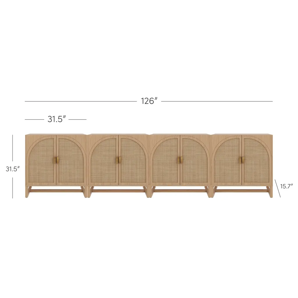 Large Boho Arched Tv Console Credenza Raw Oak (Set Of 4)