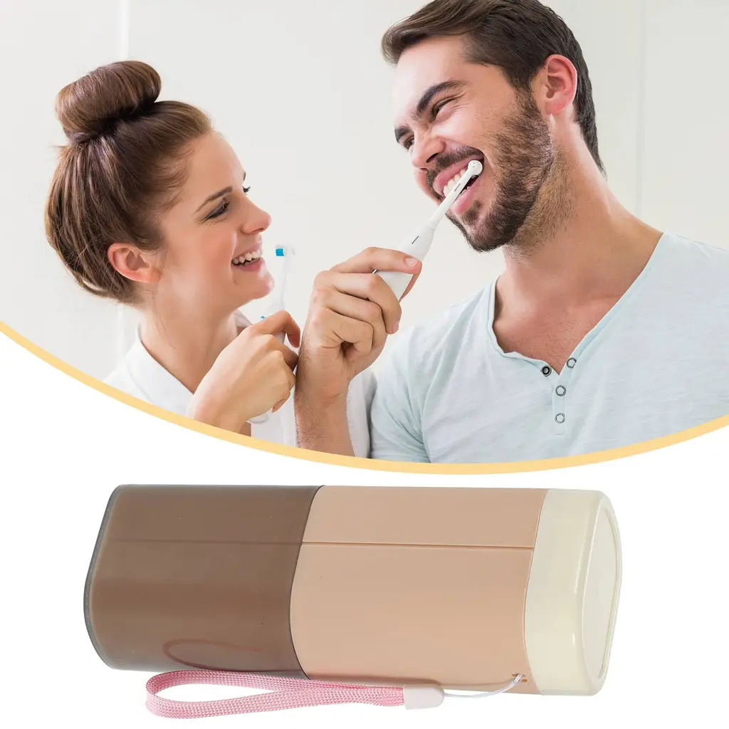 Large Capacity Toothbrush Case With Cup Pp Pe 7.87"x3.07"x2.28" - Pink Brown