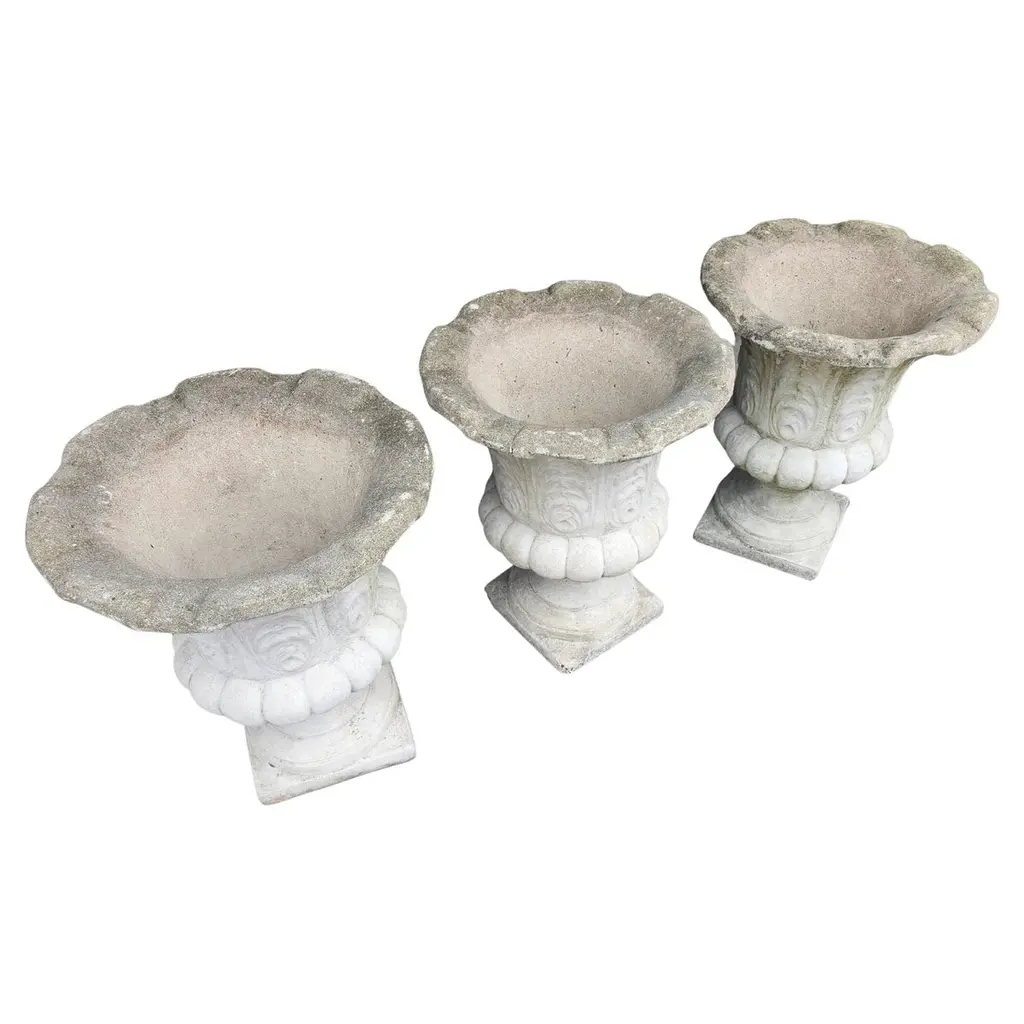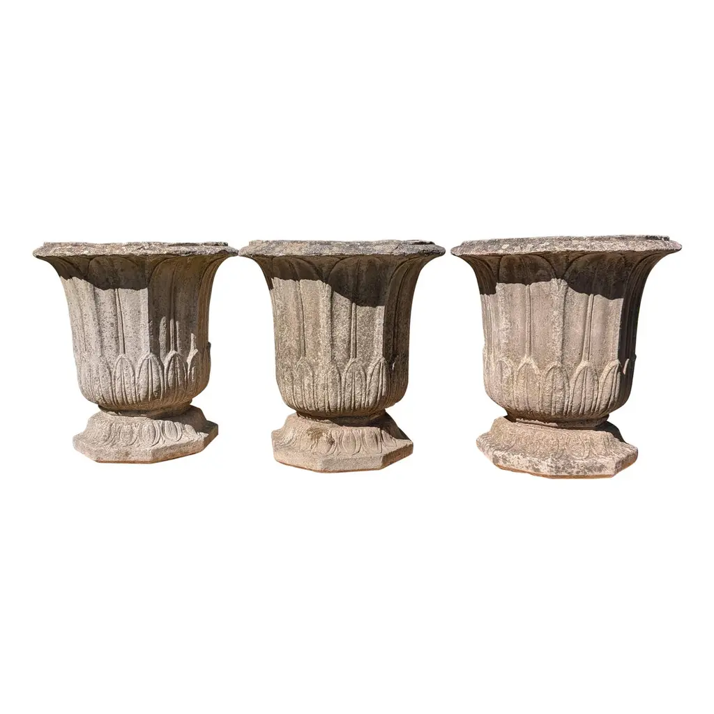 Large Cast Stone With Leaf Patterns Flared Tops 3 Available Ps