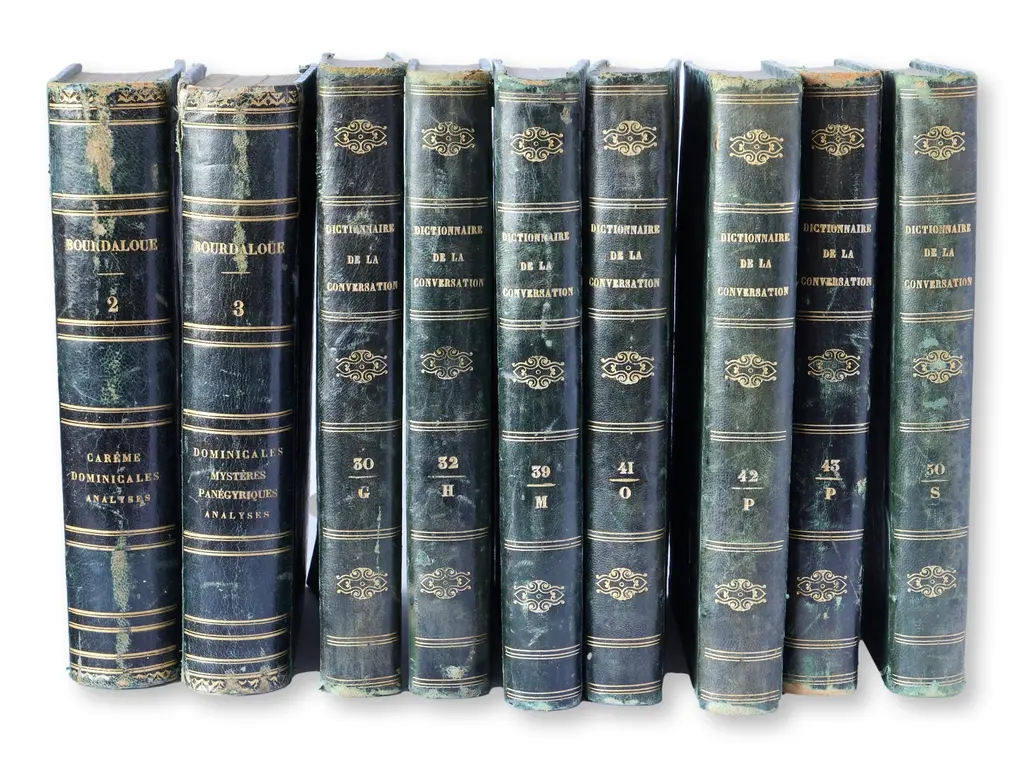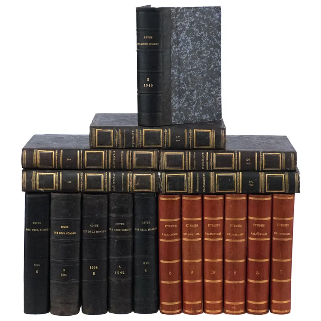 Large Collection Of Tall Decorative Scandinavian Antique Leather-Bound Books