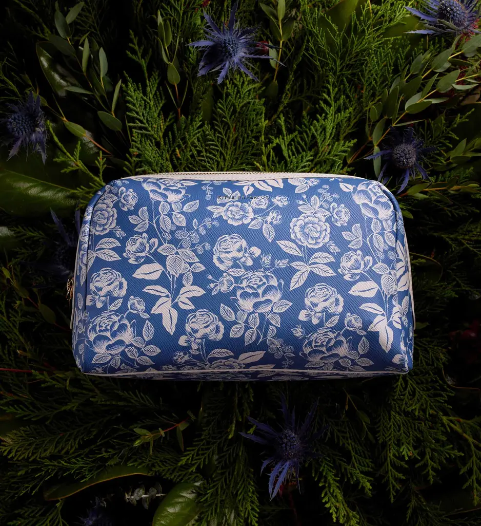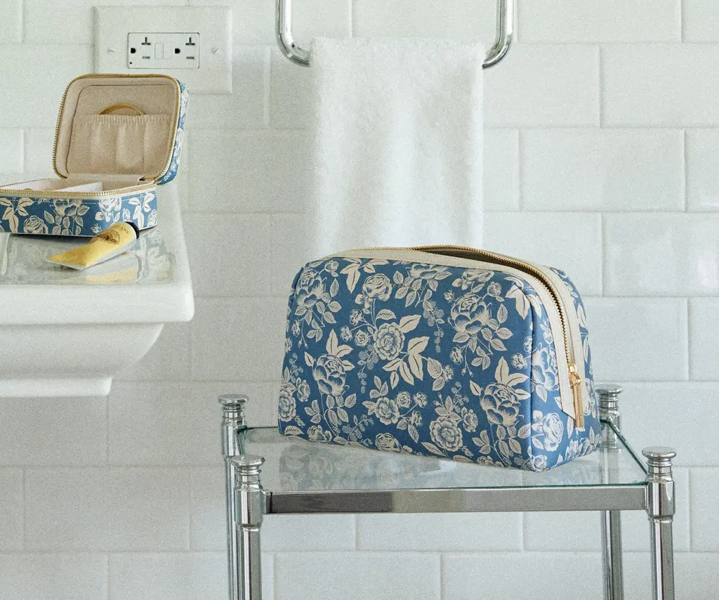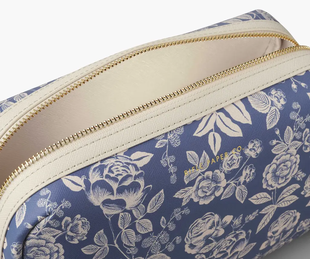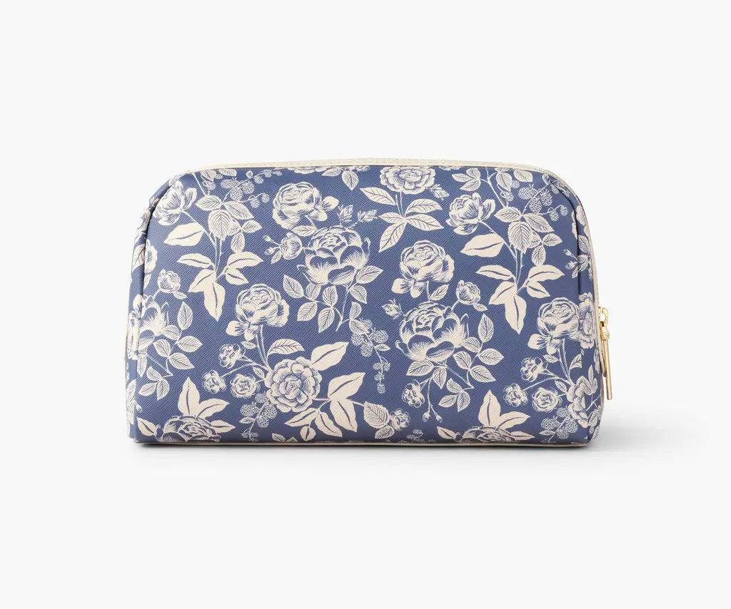 Stow toiletries and other essentials at home or away with our English Rose large cosmetic pouch. Made from a structured material with a textured finish, it is simple to wipe clean and will hold up to everyday use. A wide opening makes it easy to see what's inside, and the brass zipper and pull add a perfect finishing touch.