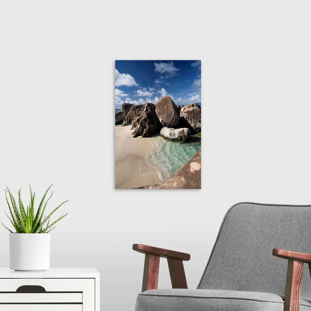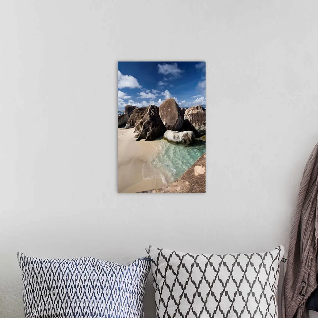 Large eroded granite outcrops at The Baths in Virgin Gorda, British Virgin Islands wall art for home and office decor. Discover canvas art prints, photos, mural, big canvas art and framed wall art in GreatBigCanvas.com's varied collections.