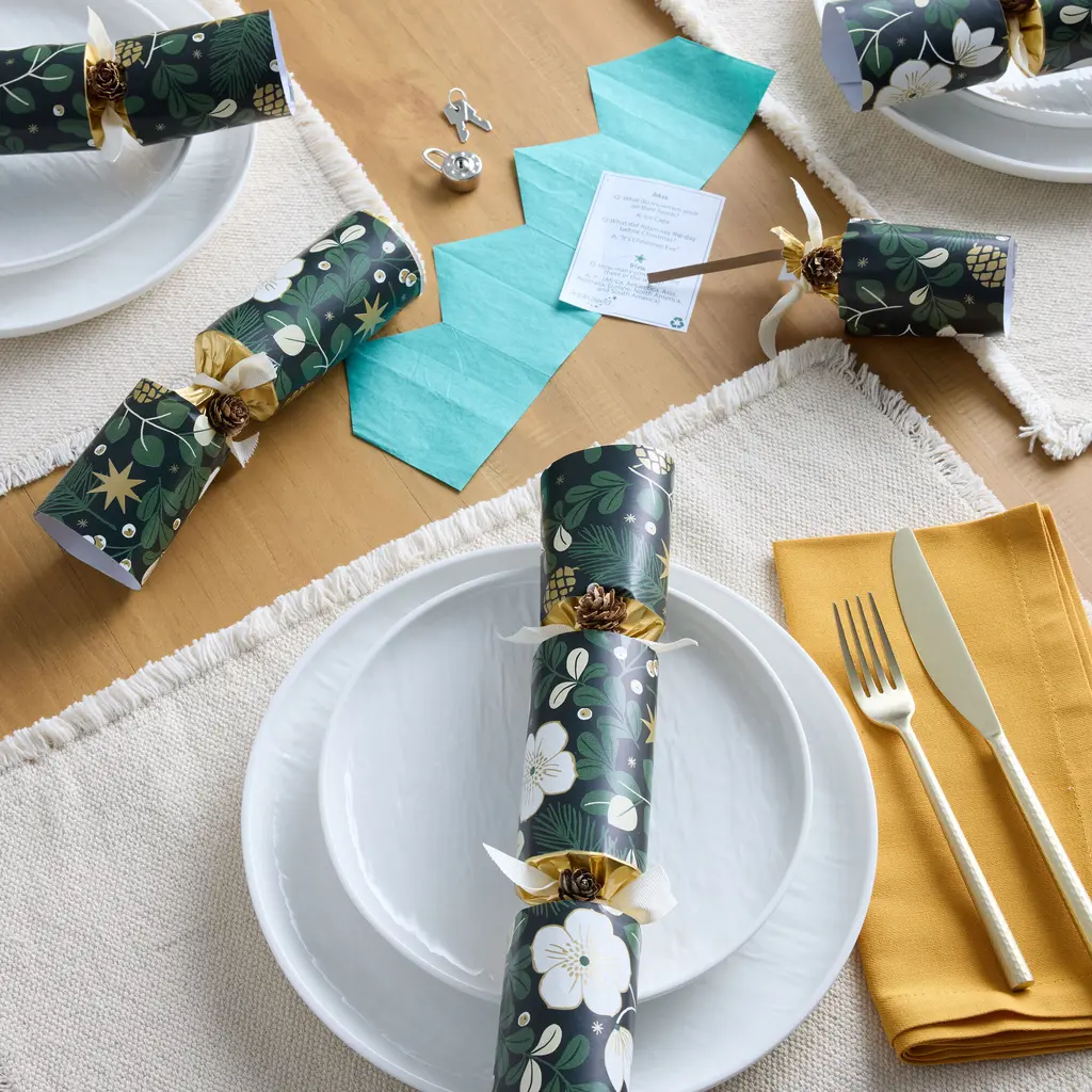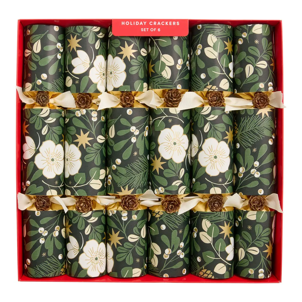 Large Green And Gold Botanicals Christmas Crackers 6 Count