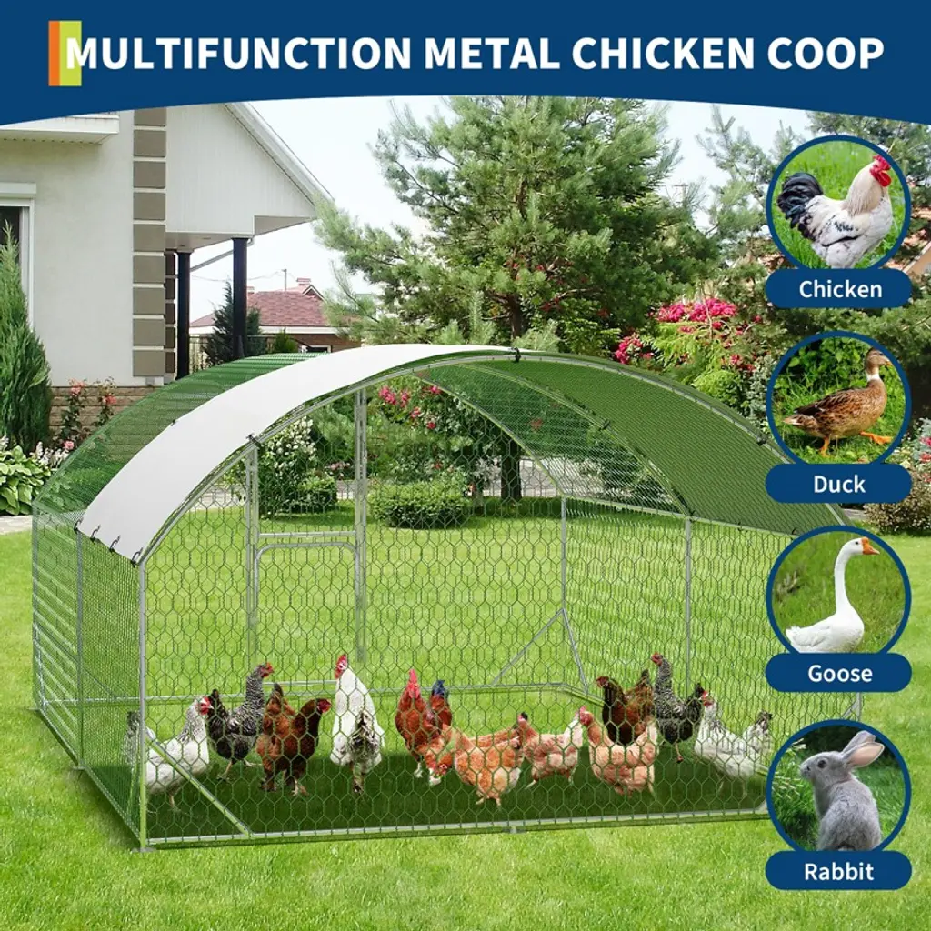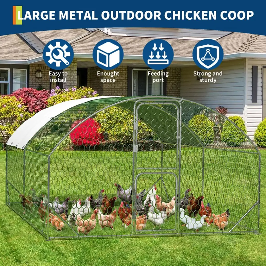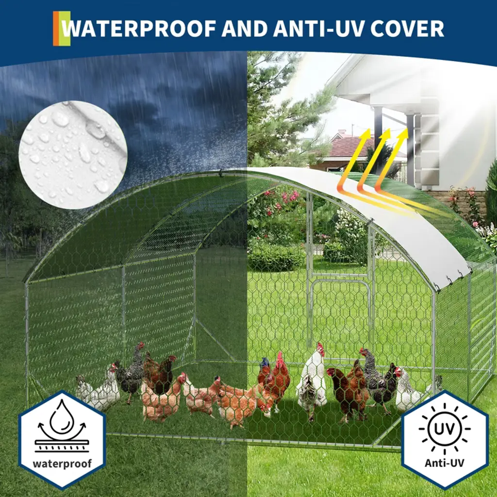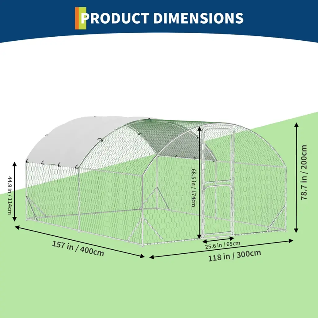 Large Metal Chicken Coop, Chicken Runs For Yard With Cover, Large Chicken Run With Double Door 9.8' W X 13.1' D X 6.6' H