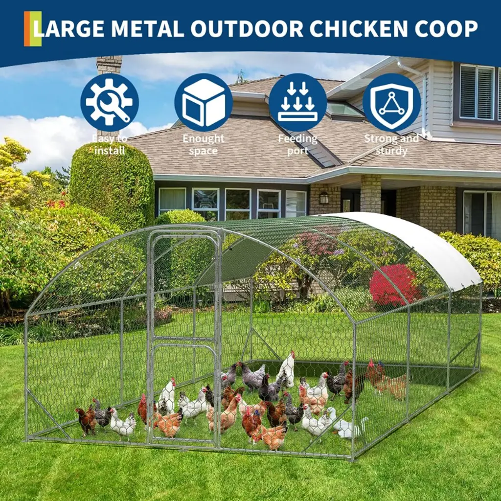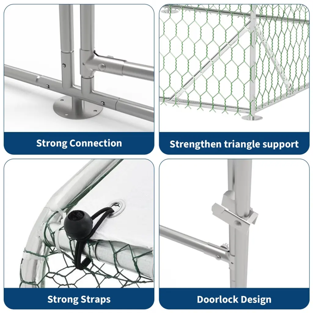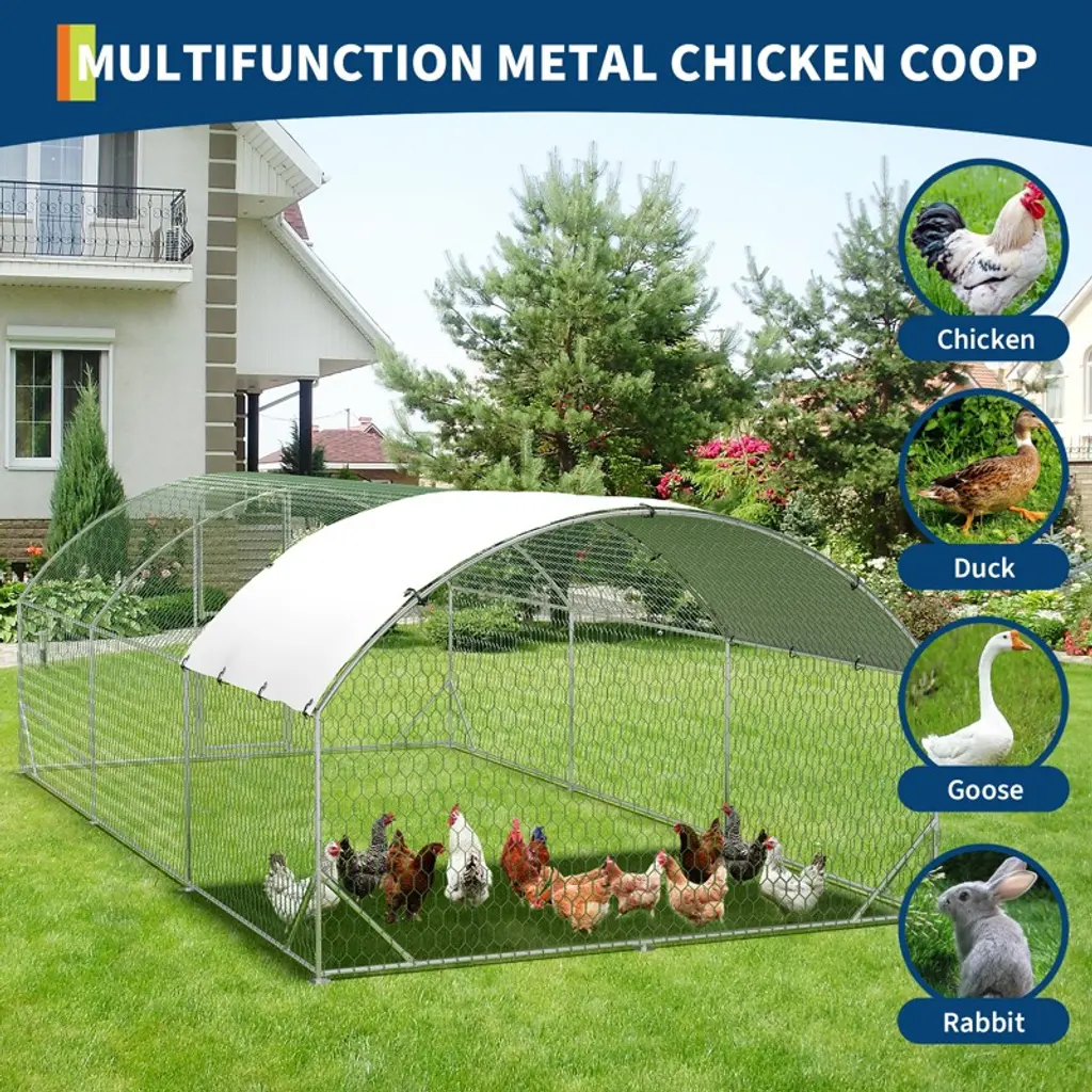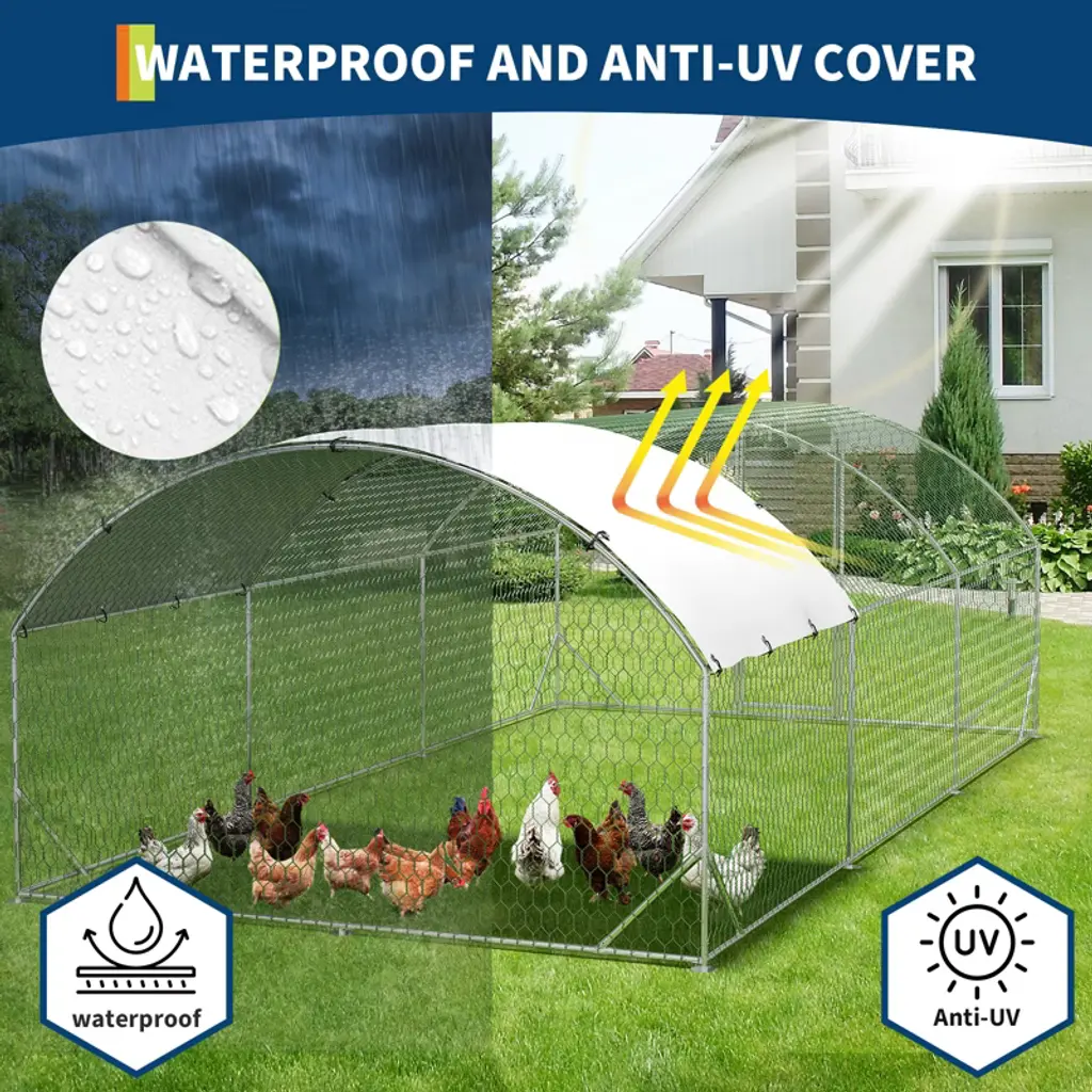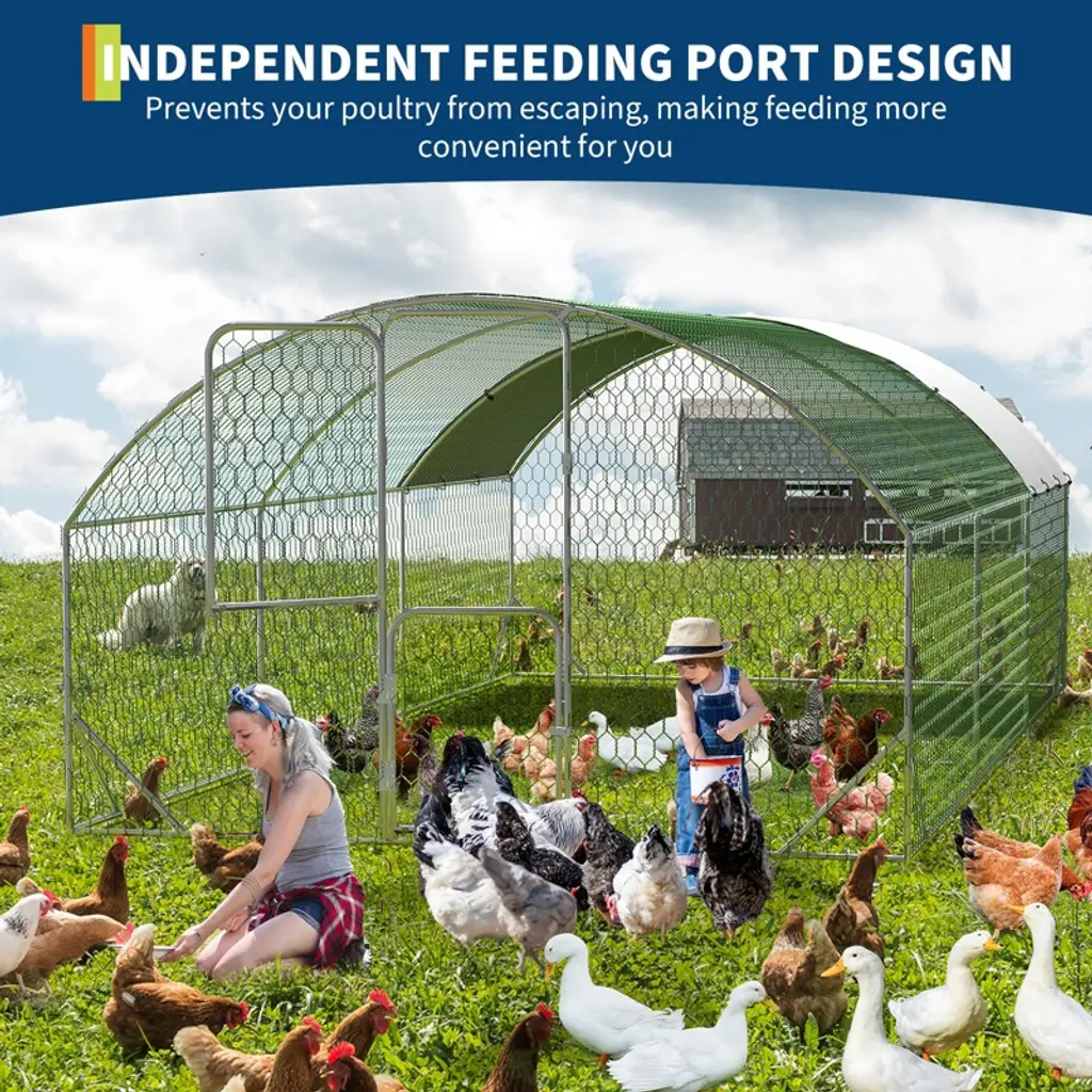 This chicken run's split-door design lets you open the top or bottom separately for easy feeding, cleaning, or checking on your poultry. Double lockable doors add security to keep your chickens or ducks safe. This heavy-duty metal chicken run is not just for chickens—it's perfect for ducks, quails, and other small animals. Its spacious design and durable construction make it an ideal outdoor enclosure for your yard or garden