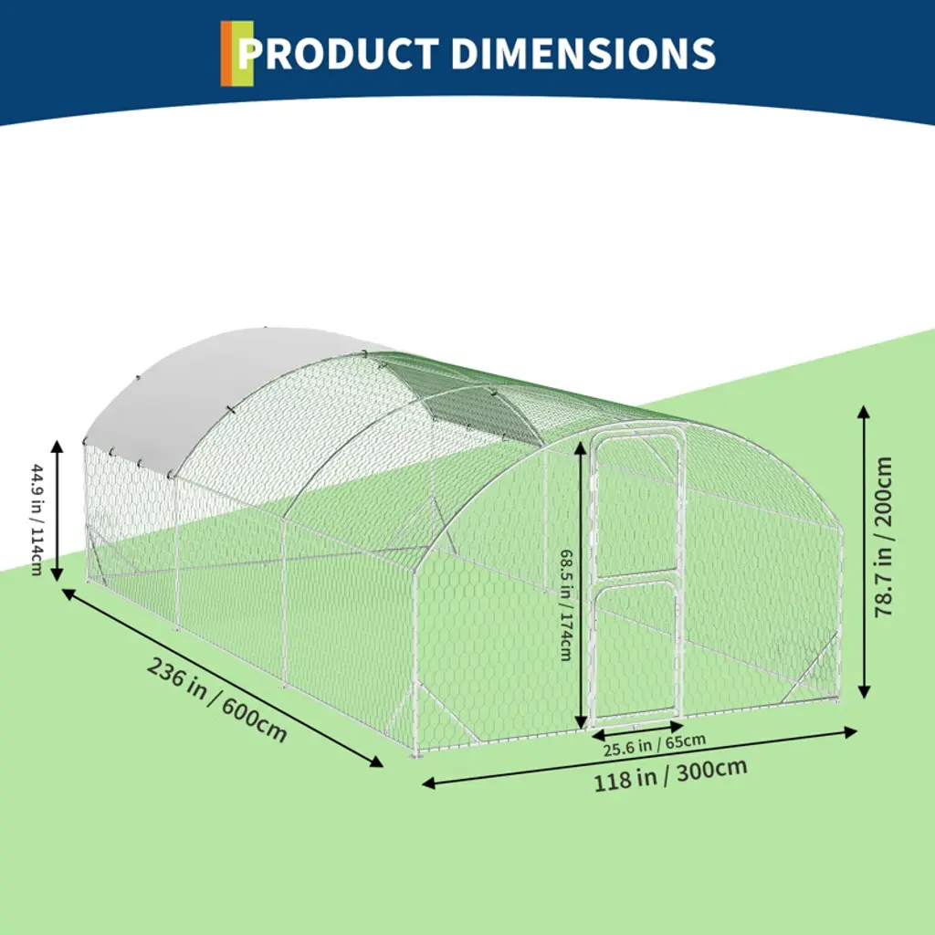 Large Metal Chicken Coop, Chicken Runs For Yard With Cover, Large Chicken Run With Double Door 9.8' W X 19.7' L X 6.6' H