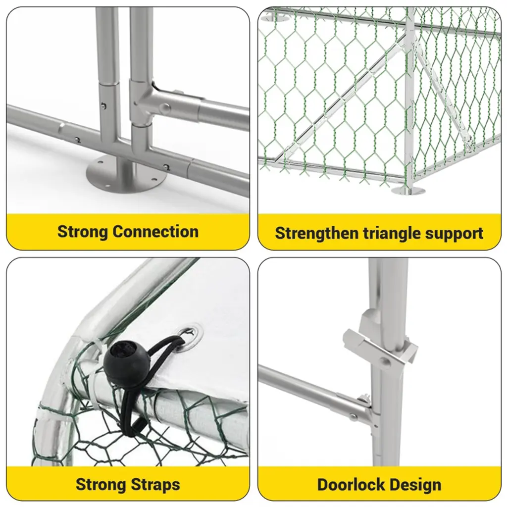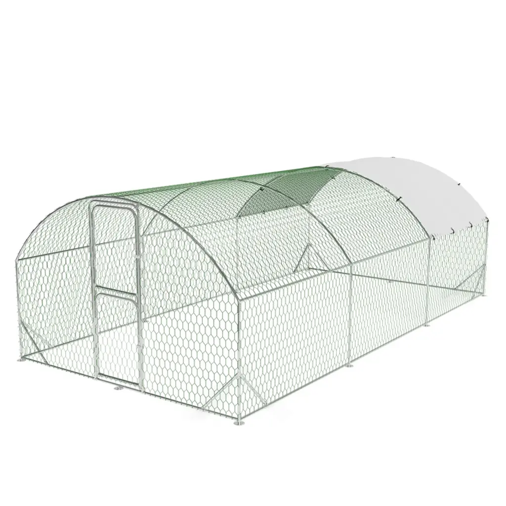 Specification: Size: 9.8x6.5x6.5 ft / 9.8x13.1x6.6 ft / 9.8x19.7x6.6 ft Color: silver Material: iron Friendly note: Take your time to ensure each piece is securely connected, and don't hesitate to double-check the alignment of the frame and mesh. Regularly check the waterproof cover for wear and tear, especially after extreme weather conditions. Secure the double lockable doors properly to keep your poultry safe from predators. Clean the coop periodically to maintain hygiene and prevent buildup of debris or waste. Packing list: Chicken coop x1 Cover x1 Hardware bag x1 Assembly guide x1