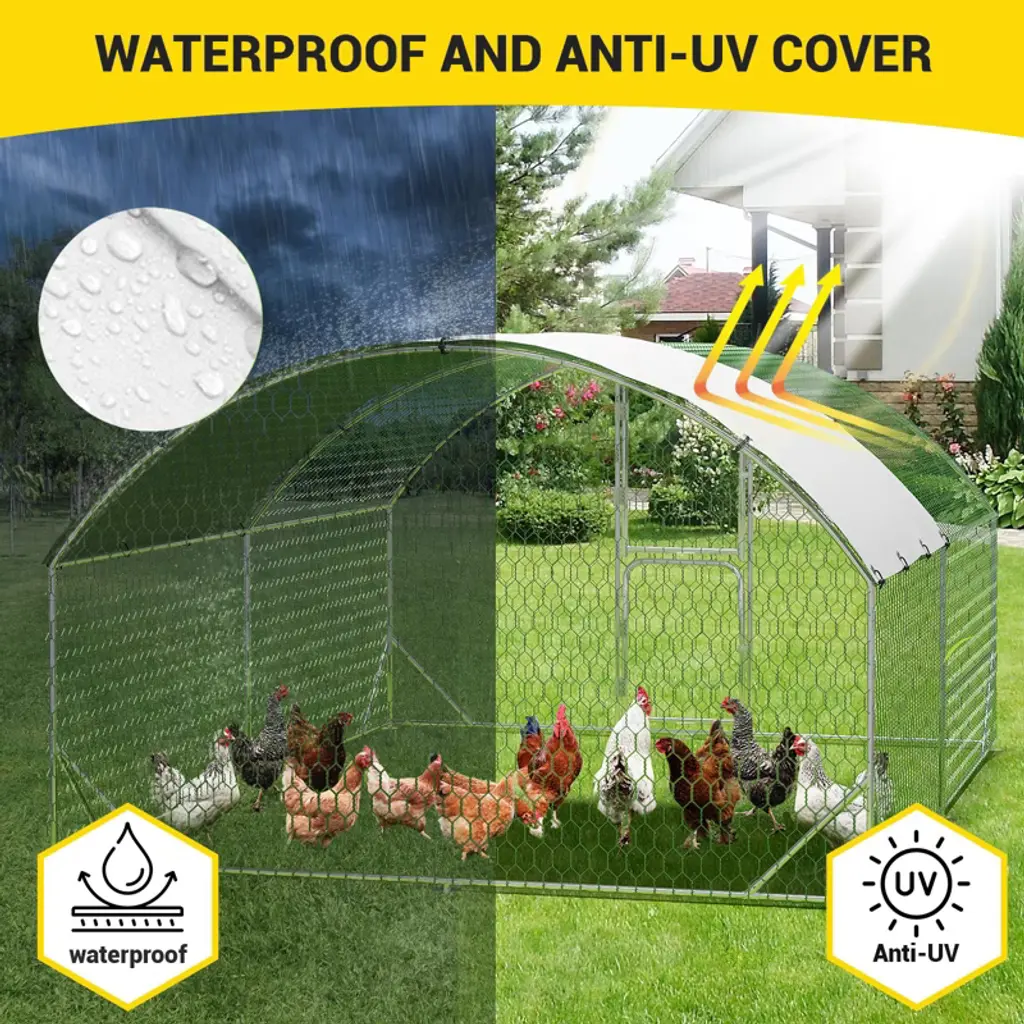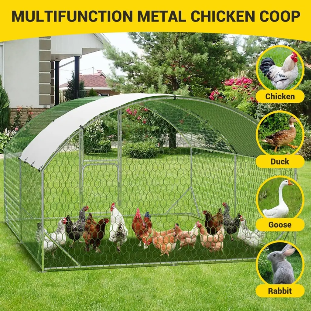 Large Metal Chicken Coop, Walk In Poultry Cage With Waterproof Cover, Chicken Run,hen Rabbit Duck House For Backyard Farm Use 9.8'w X 13.1'd X 6.6'h