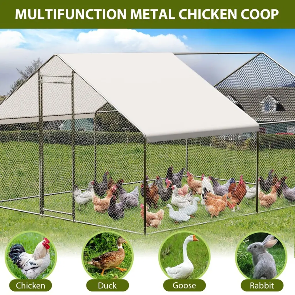 Large Metal Chicken Coop Wire Mesh Heavy Duty Chicken Run With Waterproof Cover And Anti-uv Cover Walk-in Poultry Cage(9.8' W X 13.1' L X 6.5'h)