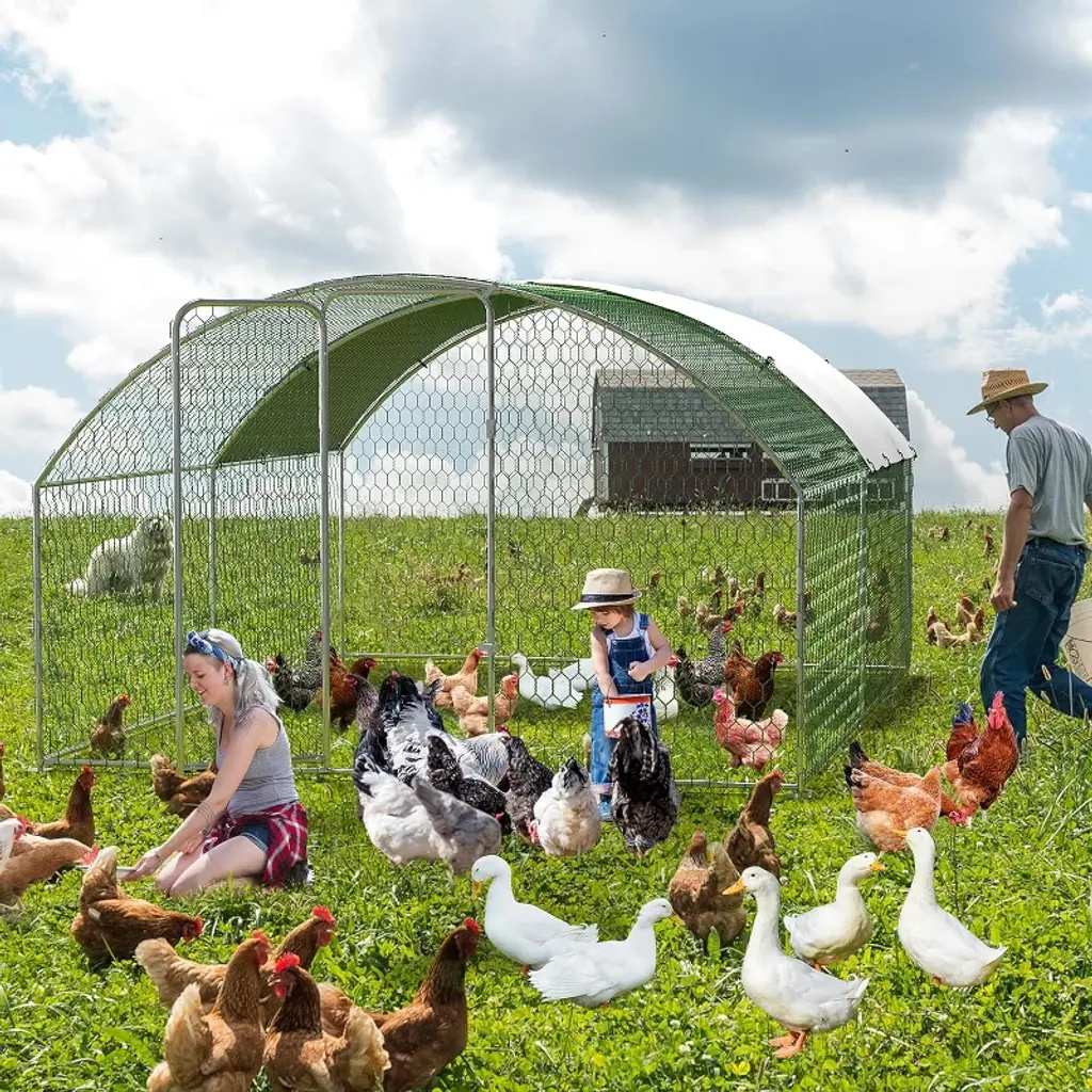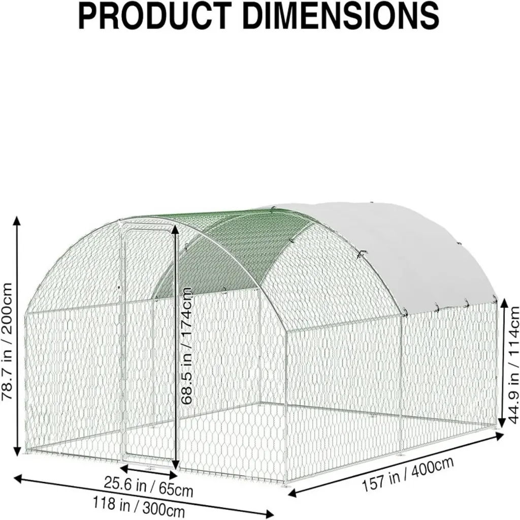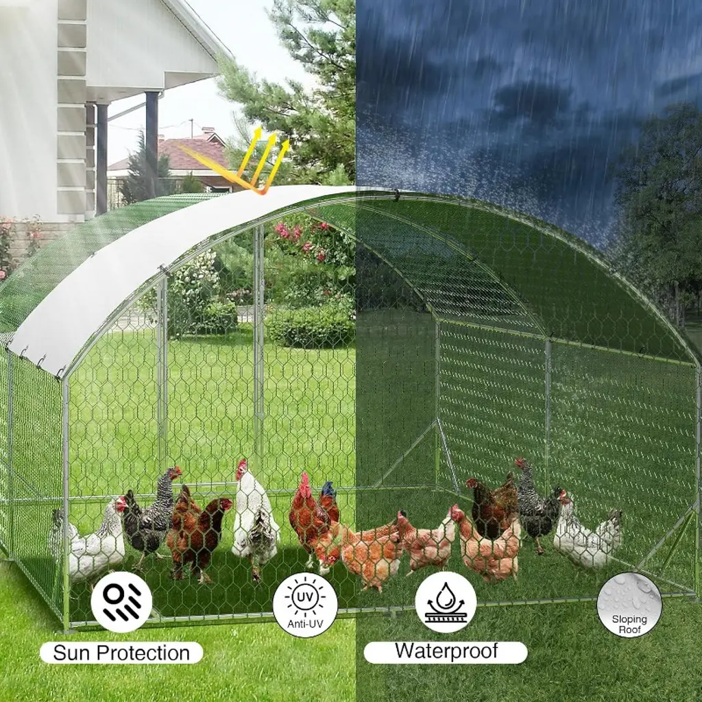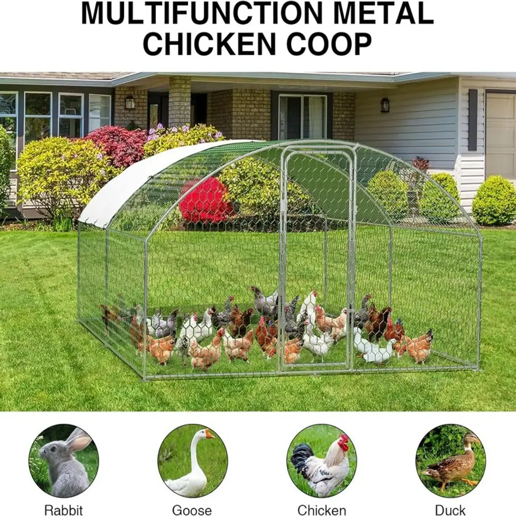 Large Metal Chicken Coop With Run, Walkin Poultry Cage For Yard With Waterproof Cover, Doom Roof For Hen House, Duck And Rabbit,9.8×13.1×6.6ft