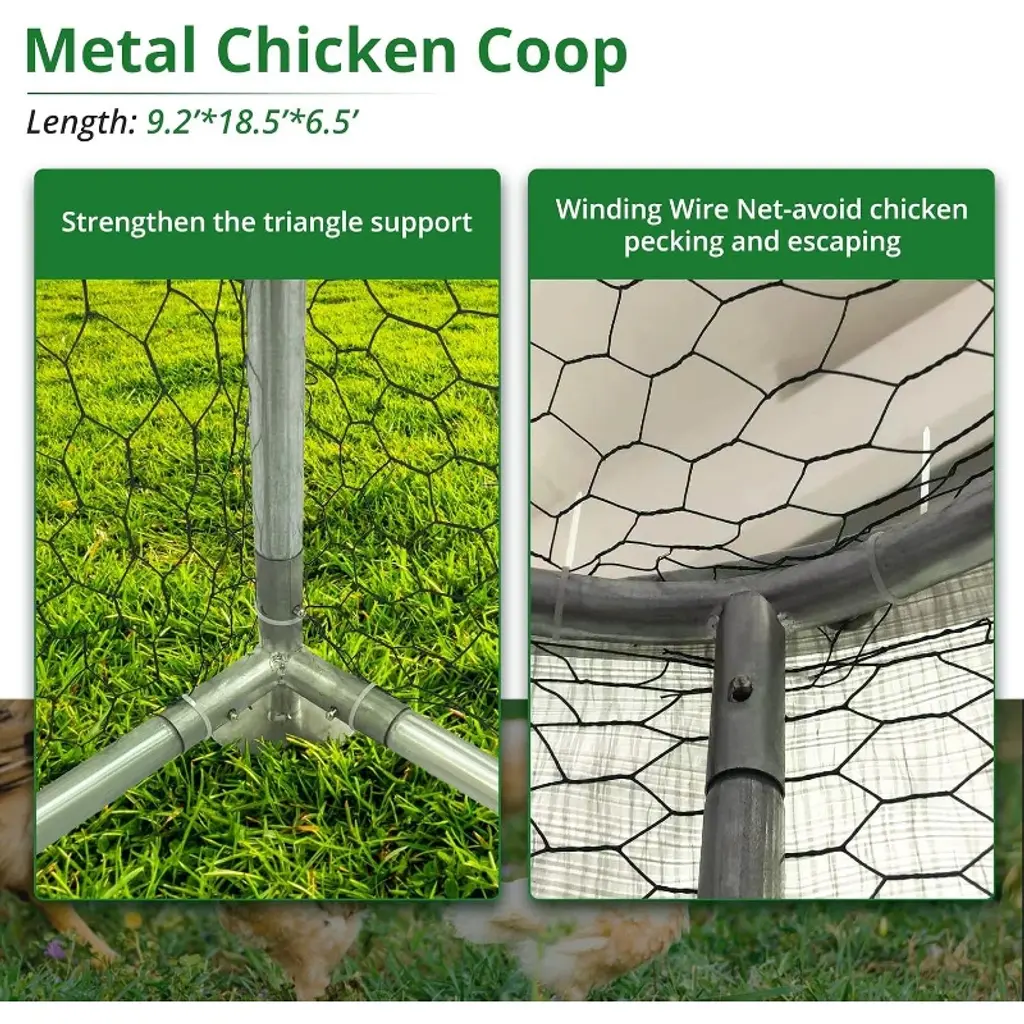 Large Metal Chicken Coop With Waterproof And Anti-uv Cover Walk-in Poultry Cage Chicken Runs For For Duck Rabbit Goose Poultry, 9.2x18.5x6.5ft